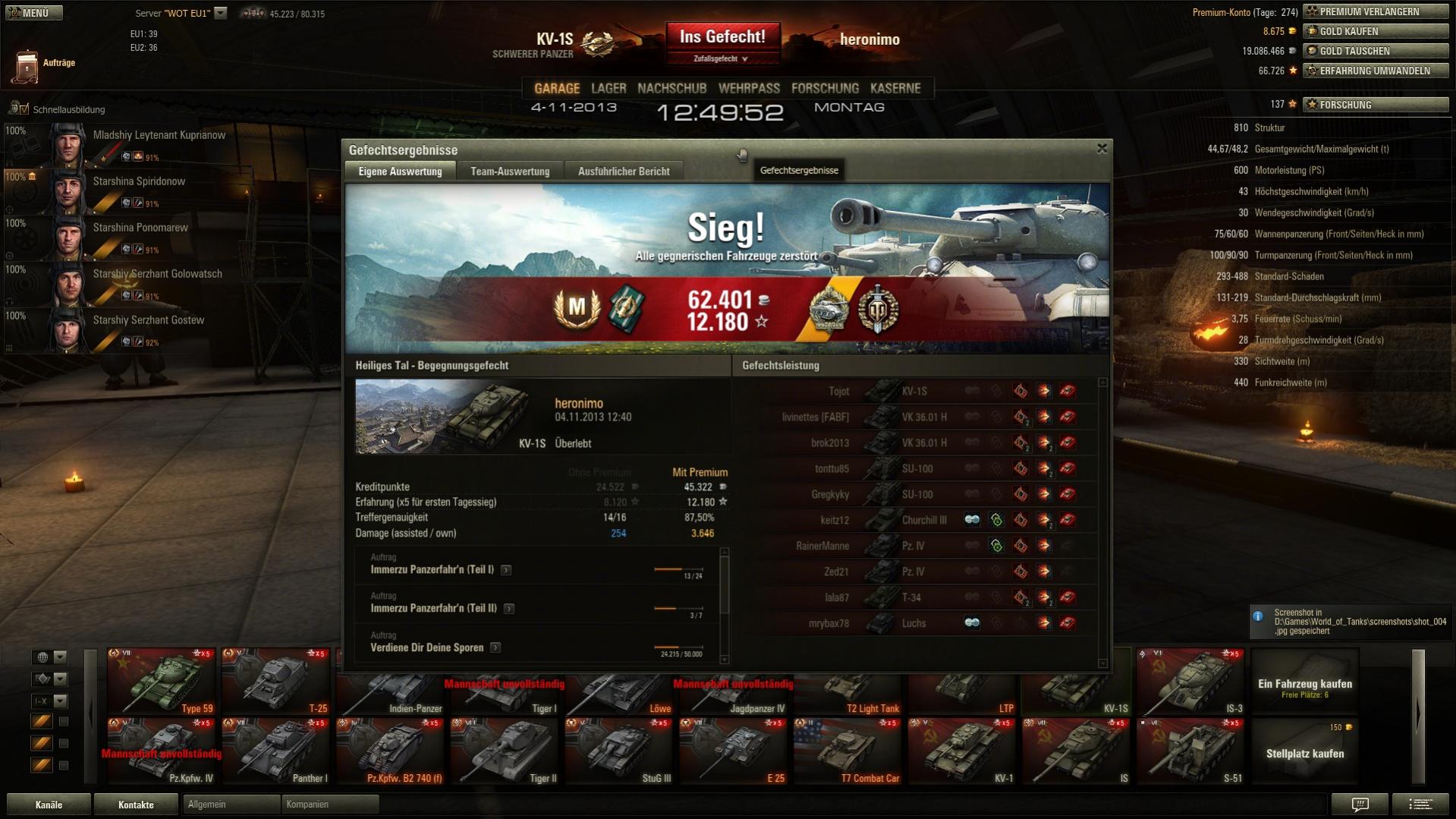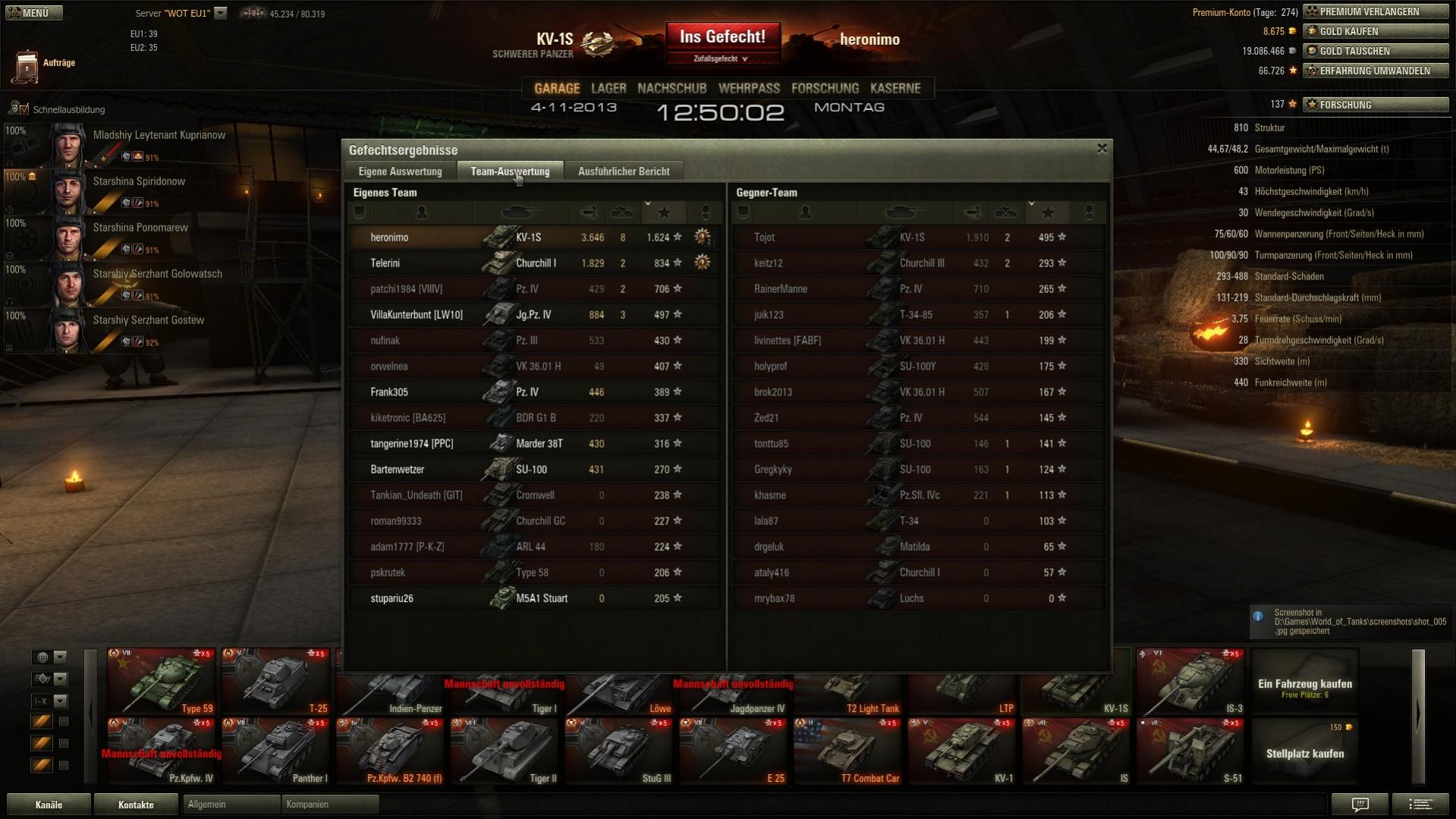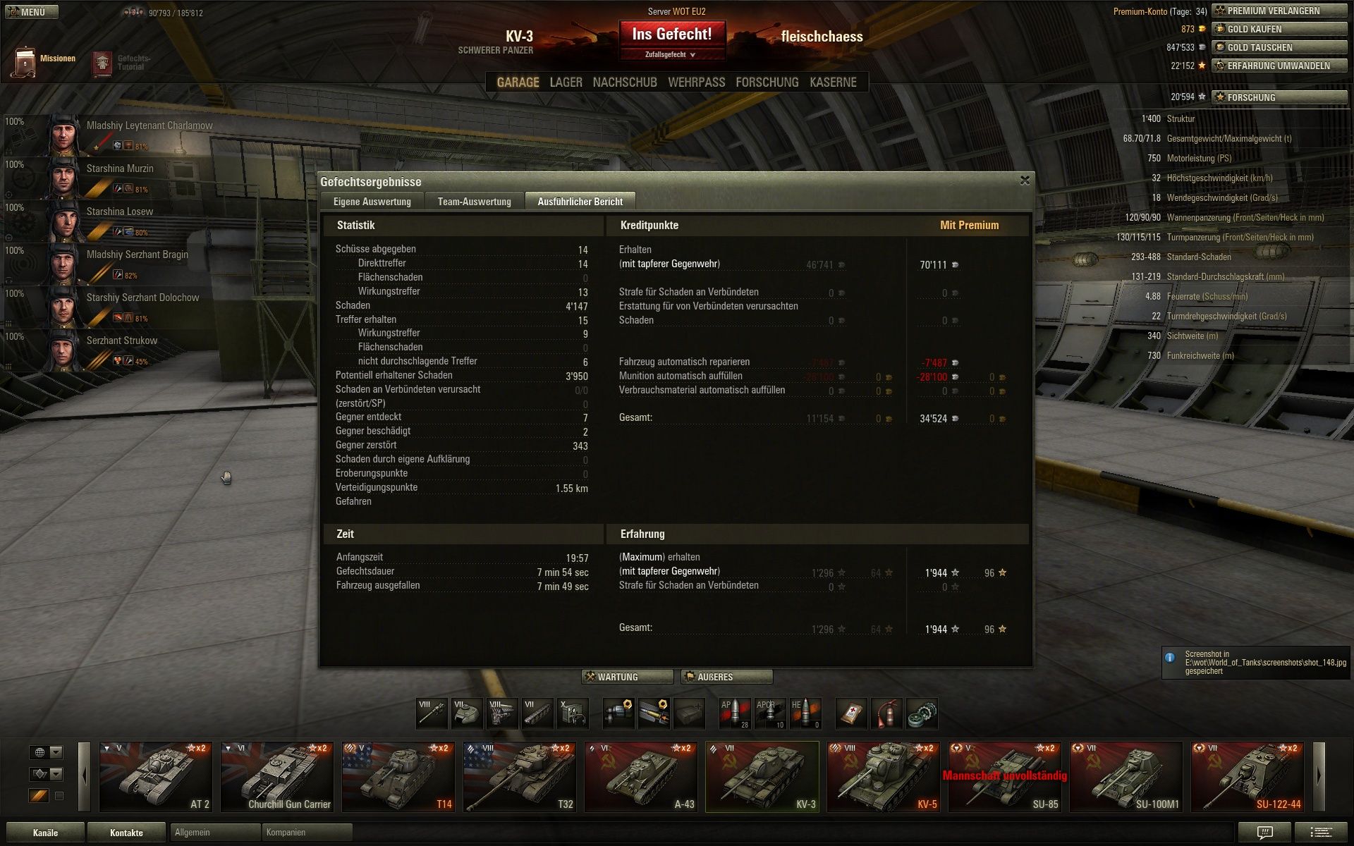 Punkte-technisch zwar eher Durchschnitt, dafür sieben Kills und der KV 1 rockt die Scheisse.