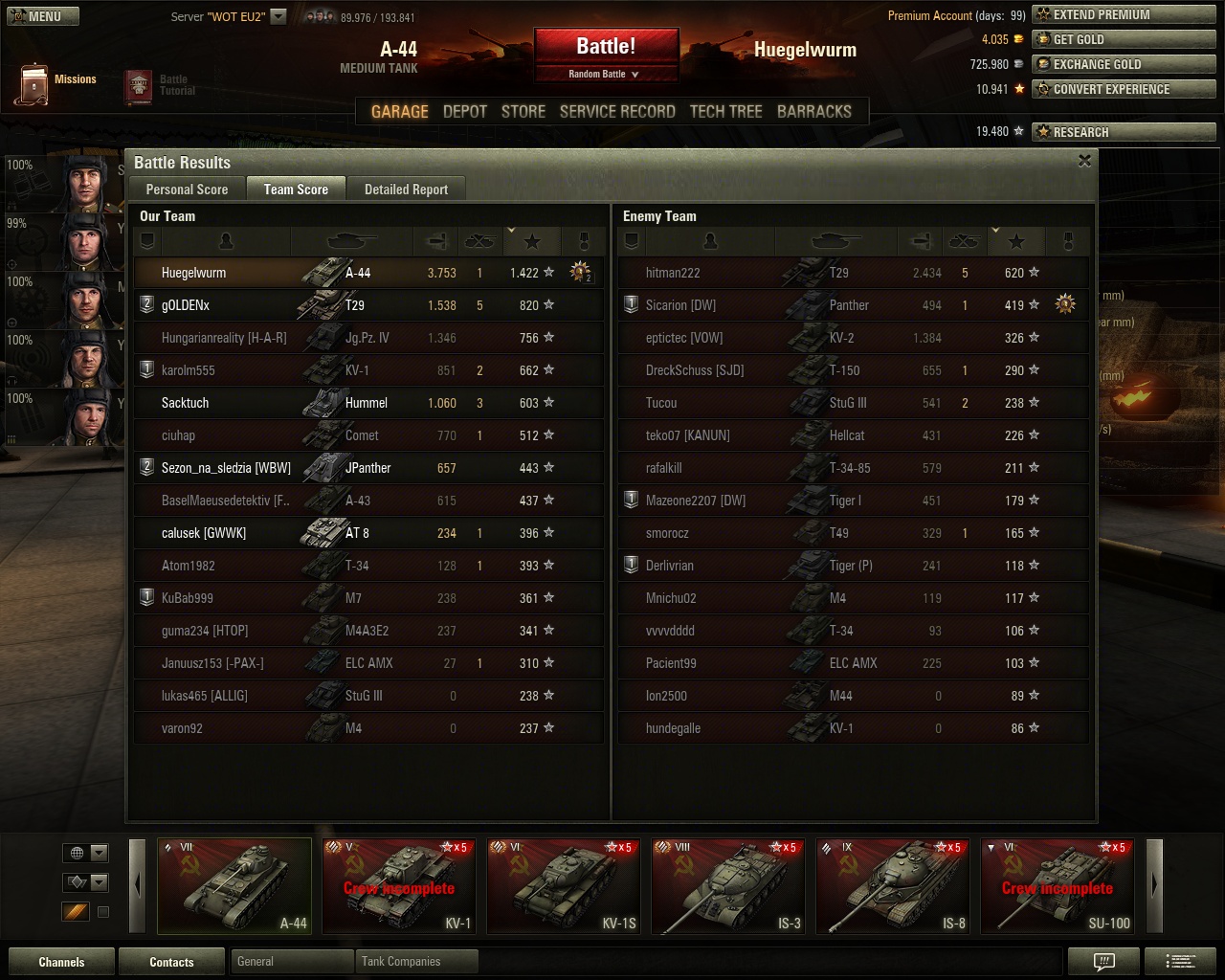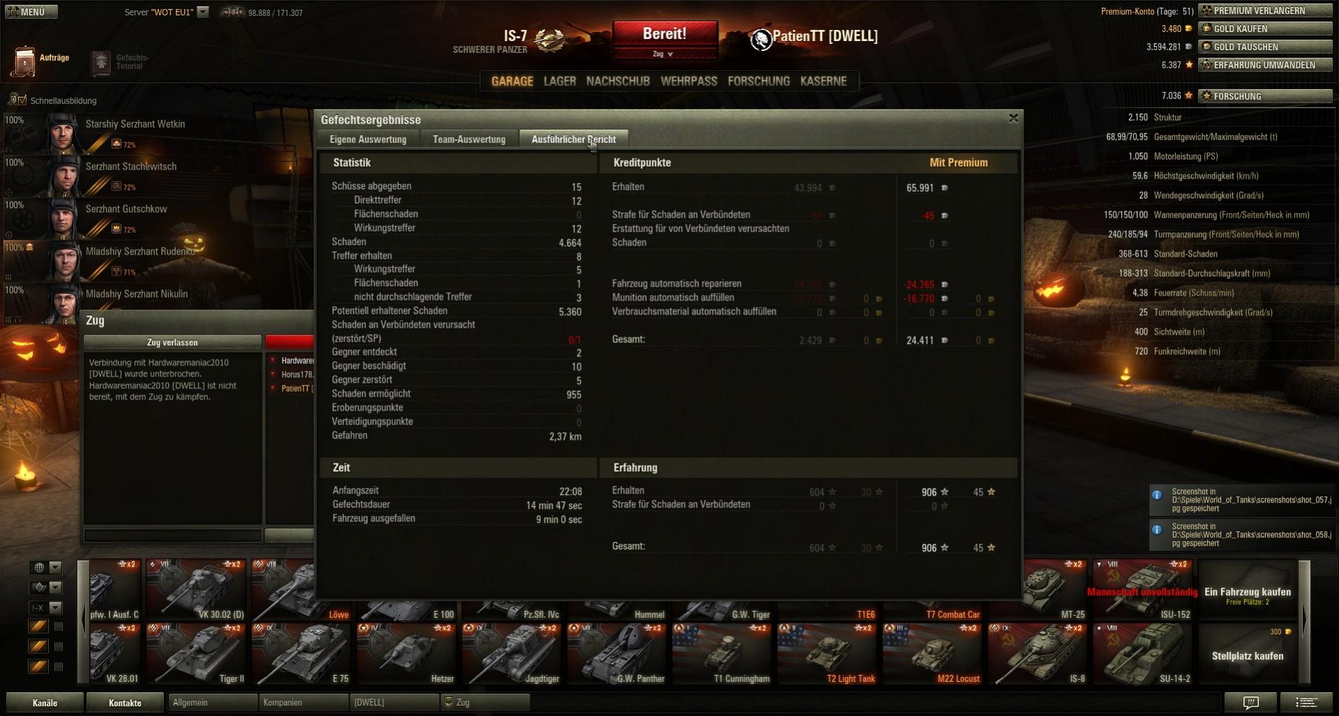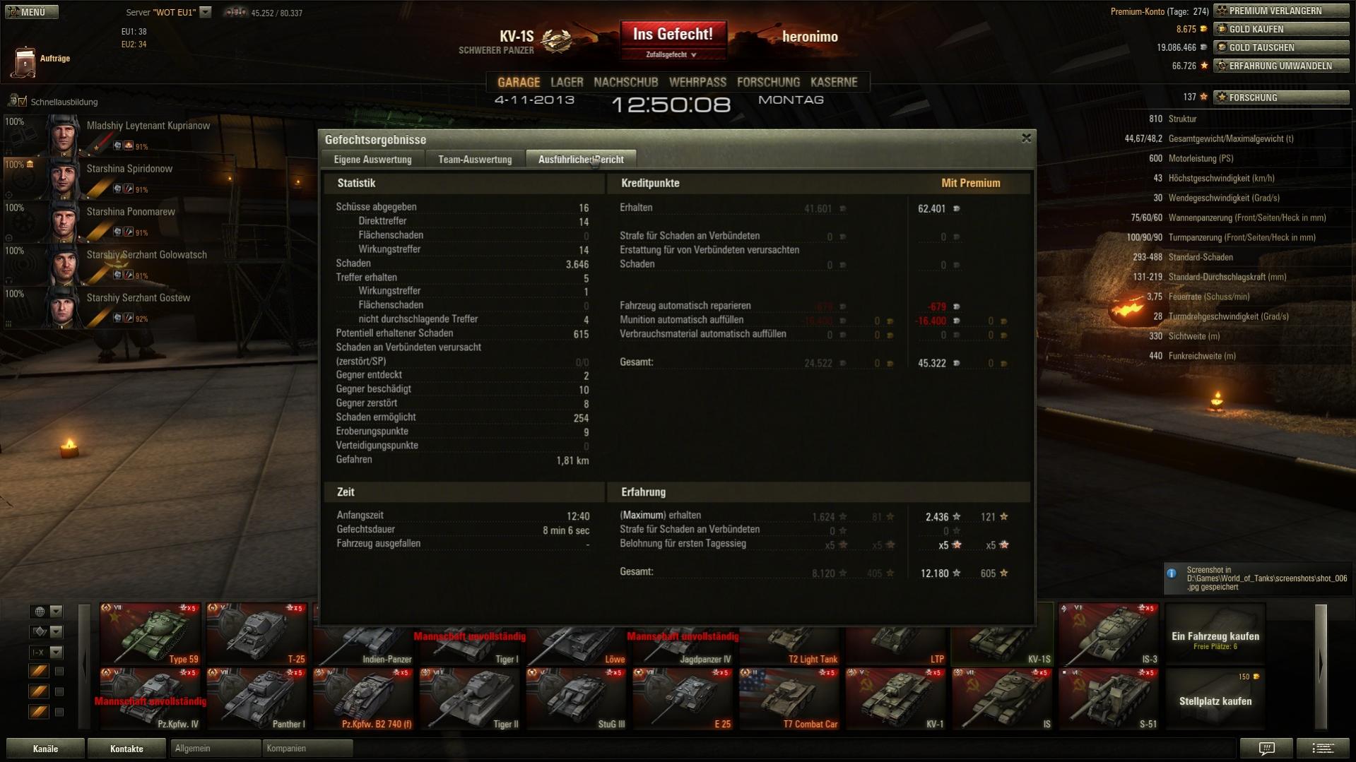 Punkte-technisch zwar eher Durchschnitt, dafür sieben Kills und der KV 1 rockt die Scheisse.