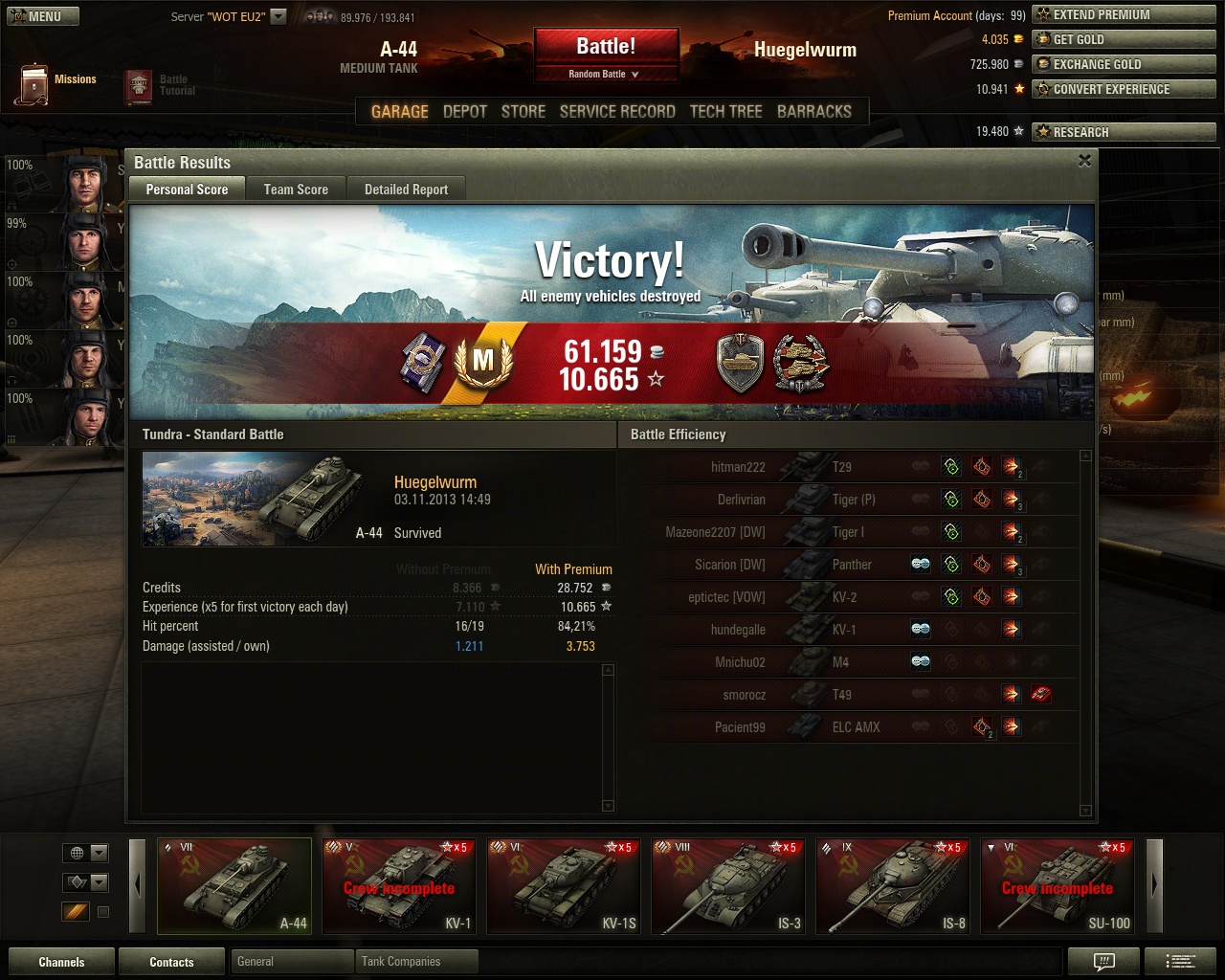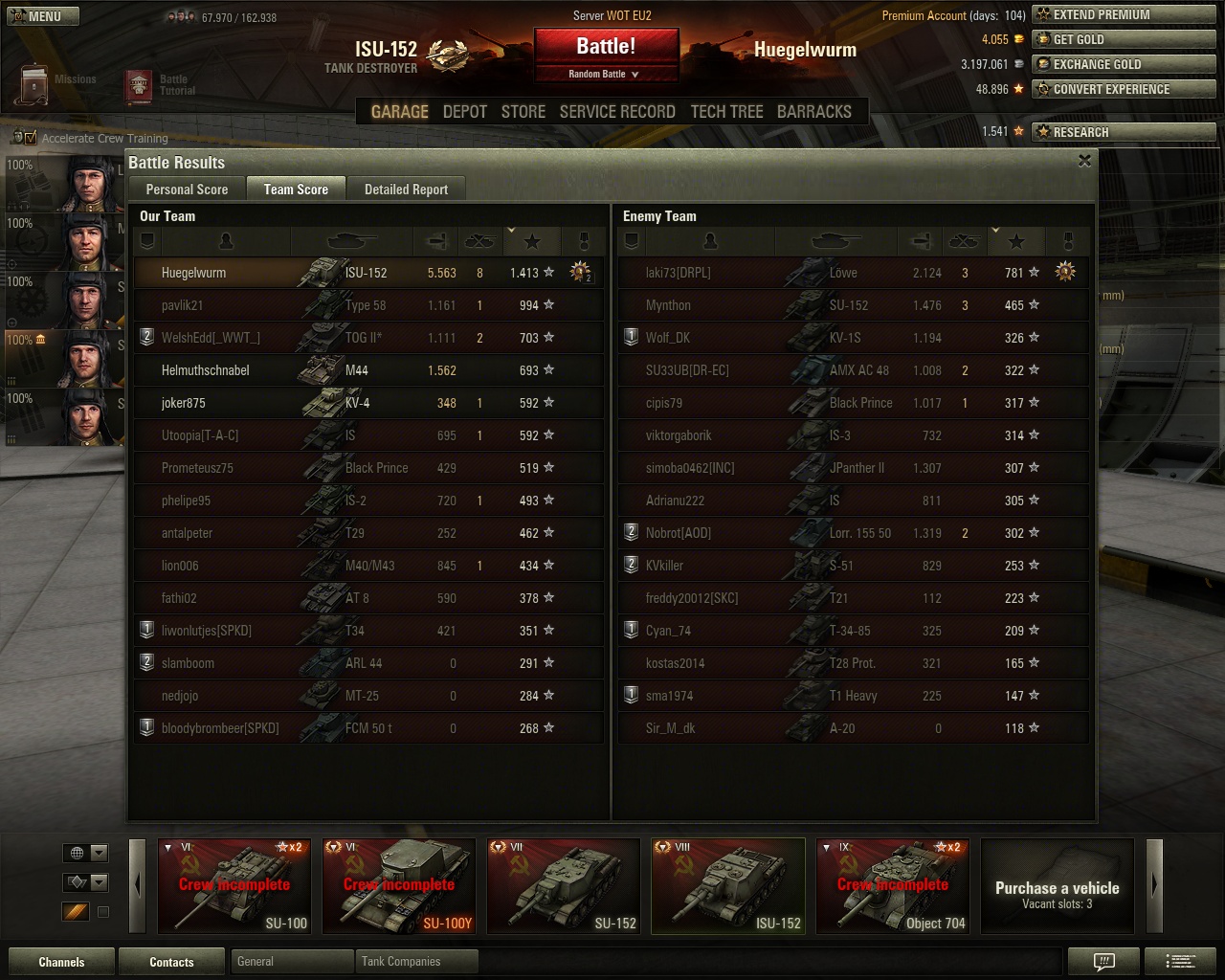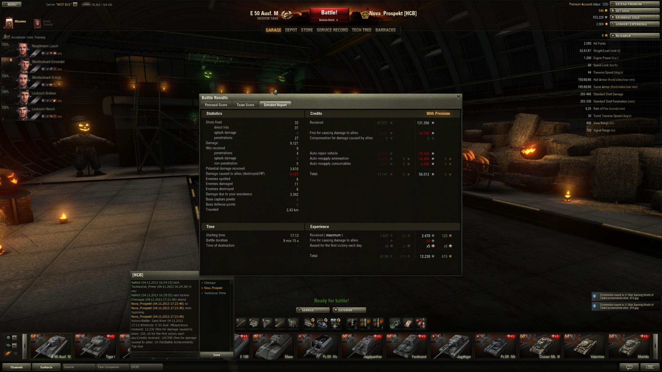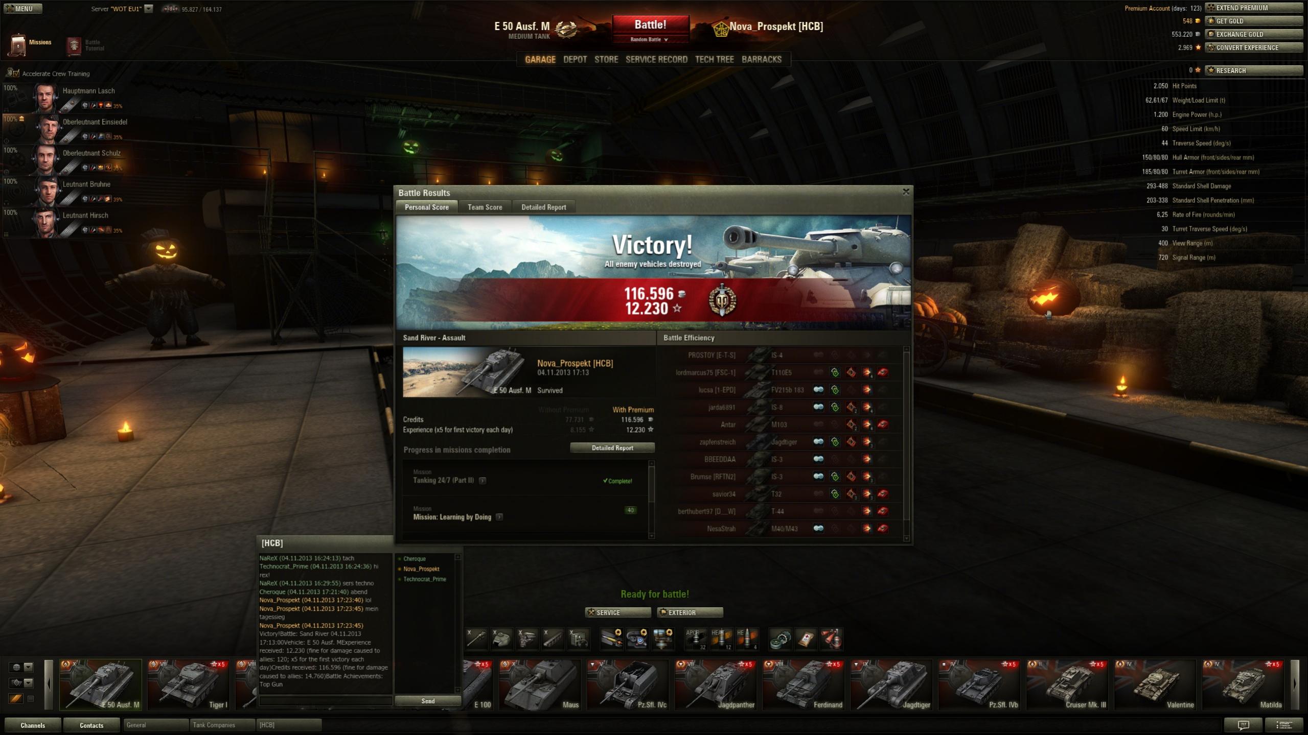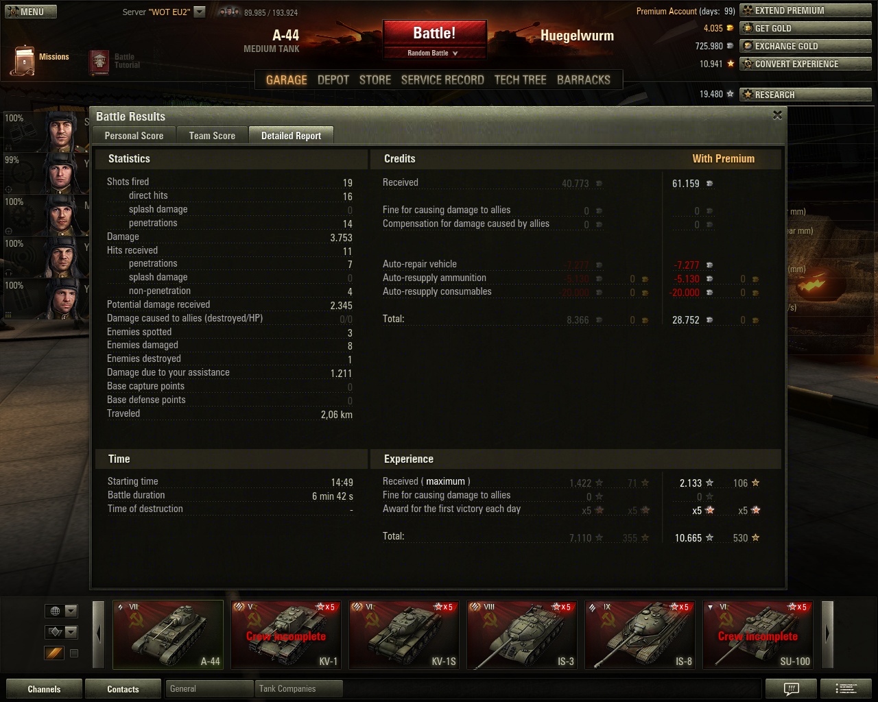 Experience received: 12.230 (fine for damage caused to allies: 120; x5 for the first victory each day)
