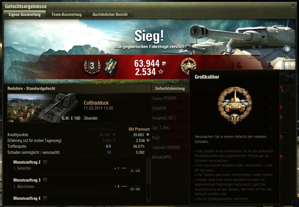 Leistungen auf dem Schlachtfeld: Krieger, Großkaliber, Stahlwand, Spartaner, Überlegenheitsabz.: "Panzerass"