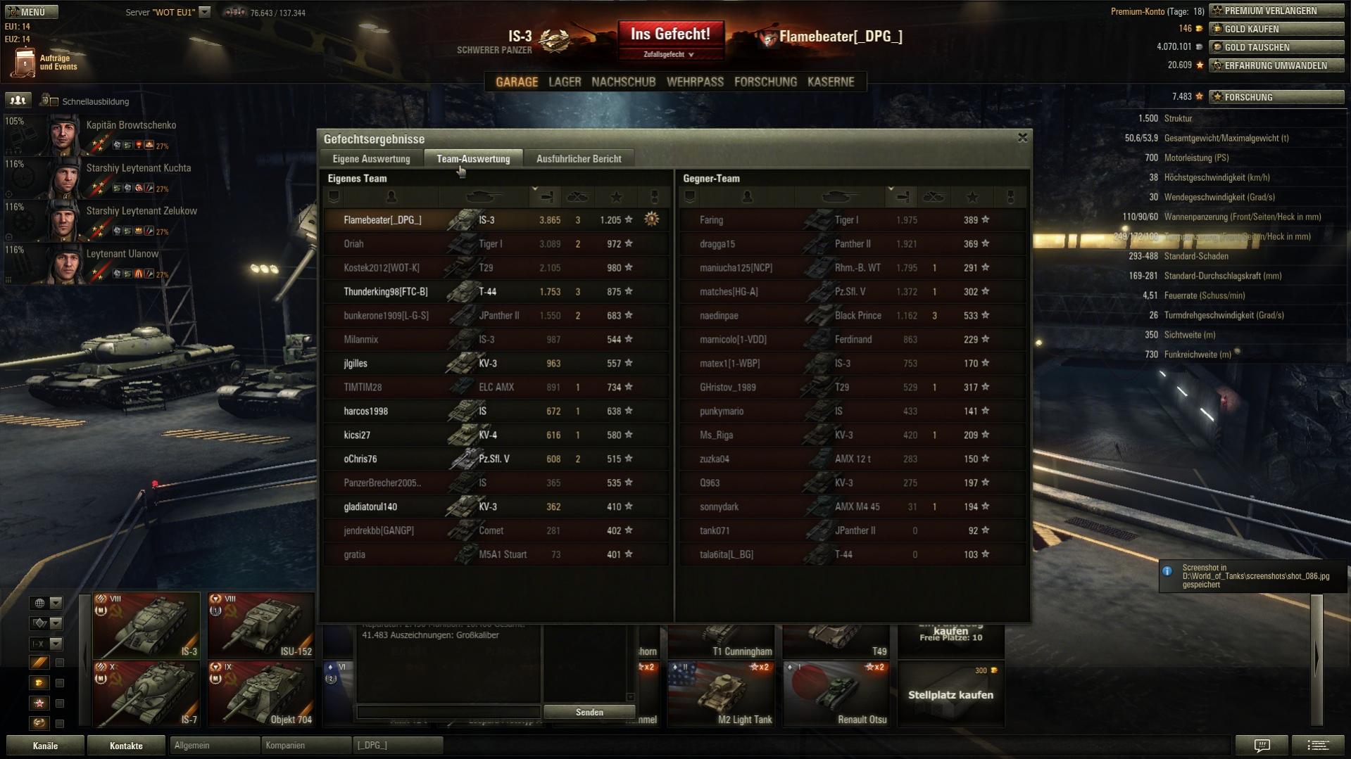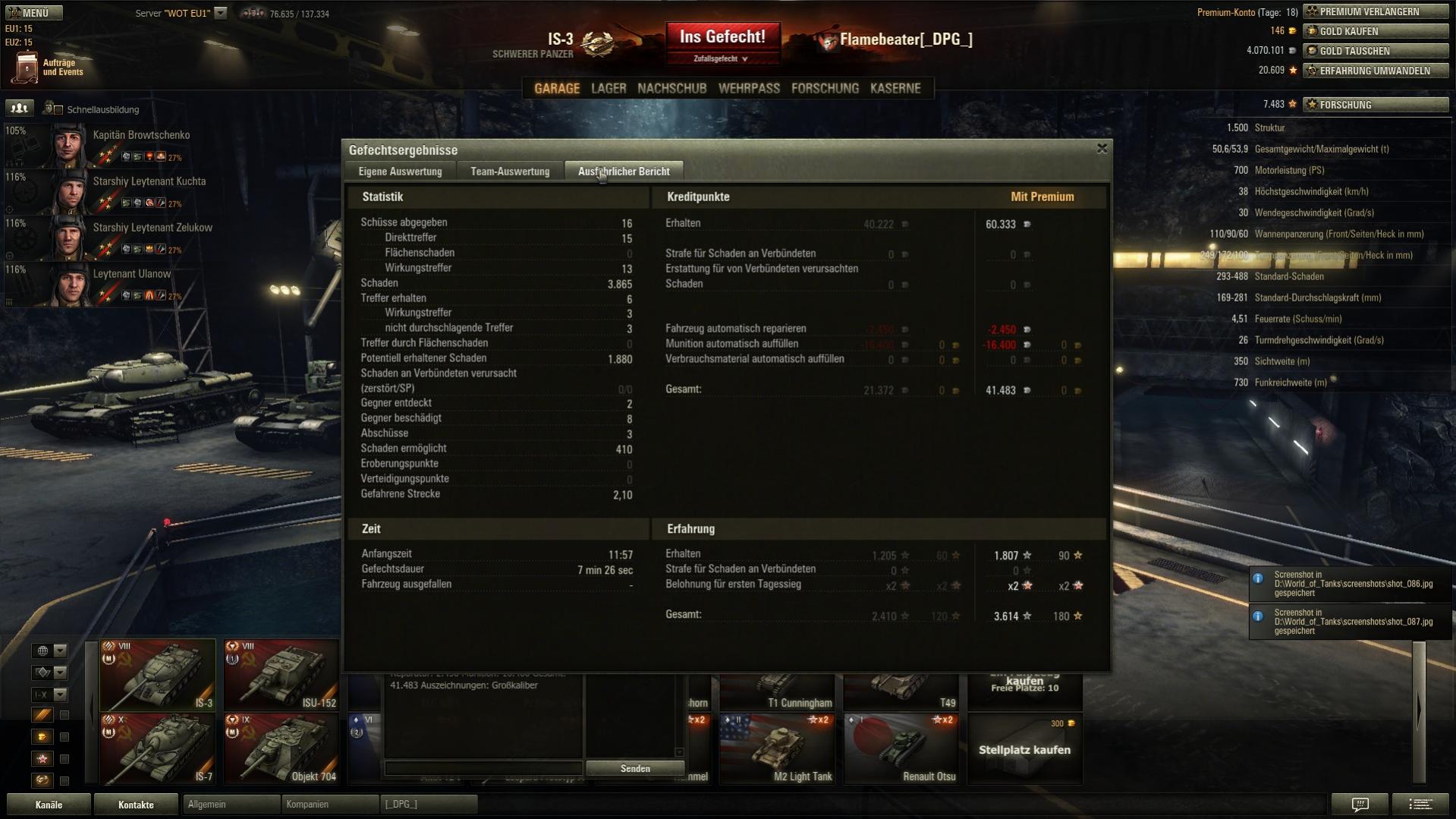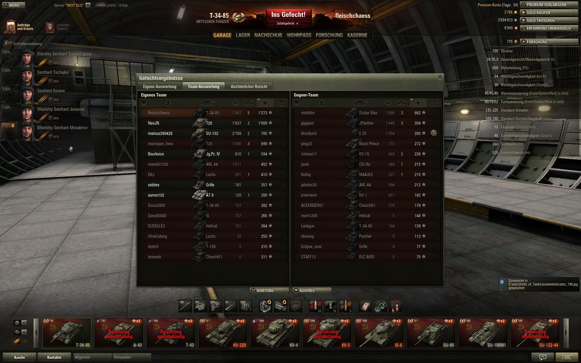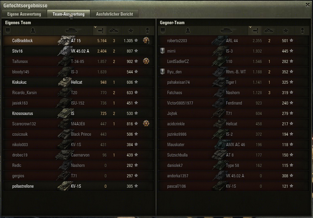 hut ab,5 k Schaden in T6 ist echt ne Wucht! Normalerweise ist die SU beim ersten Aufdecken platt.Abgesehen davon hab ich immer noch keine Lust auf den IS-8,trotz deiner Tips.Werd zum ST-1 gehen.Weil mir die KV reihe einfach besser taugt,als die IS.Und der M103 wartet auch noch,oje,soviel vor und nie Zeit zum Spielen.