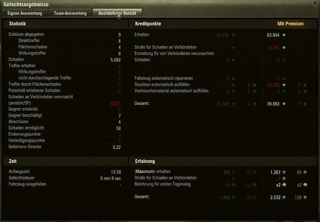 Ergebnis waren 9 Kills und ohne Premium 1469 XP