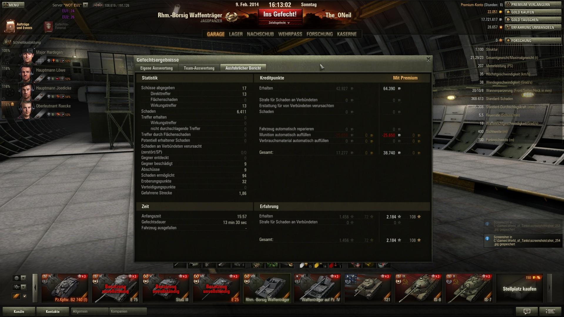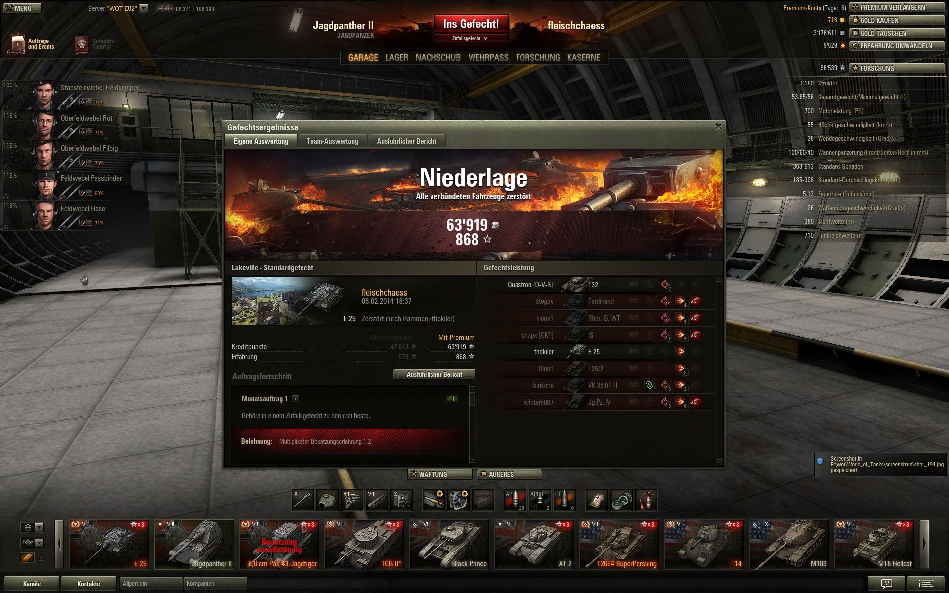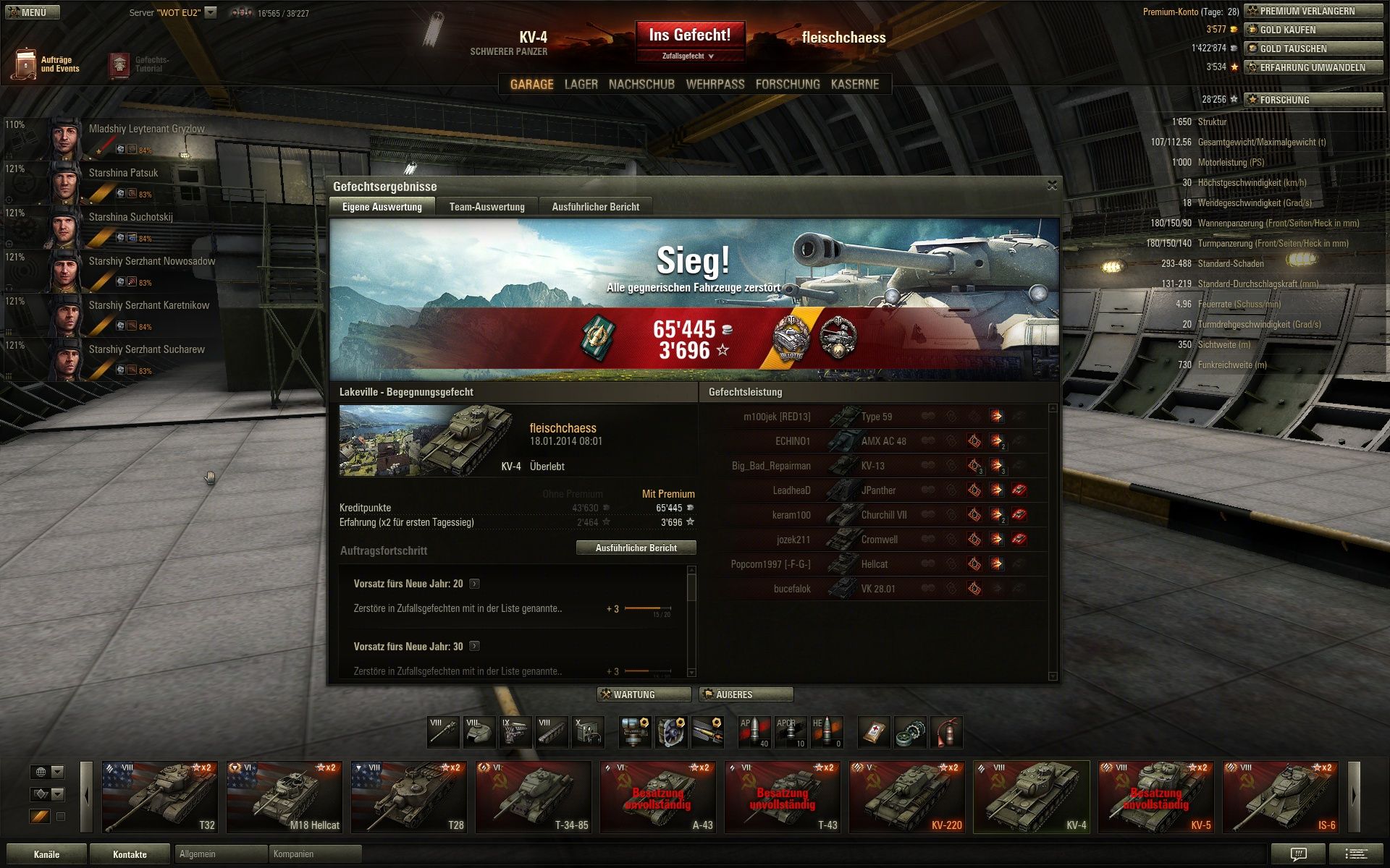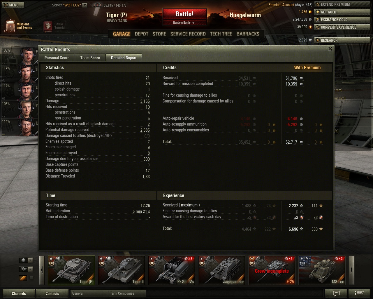 Und das erste mal seit längerem wieder über 2 k XP mit Radley-Walters dazu, da haben sich die 24 Stunden Premium schon gelohnt. Nur schade, dass sich der gegnerische Borsig versteckt hat, eine zweite Pool-Medaille wäre fein gewesen.