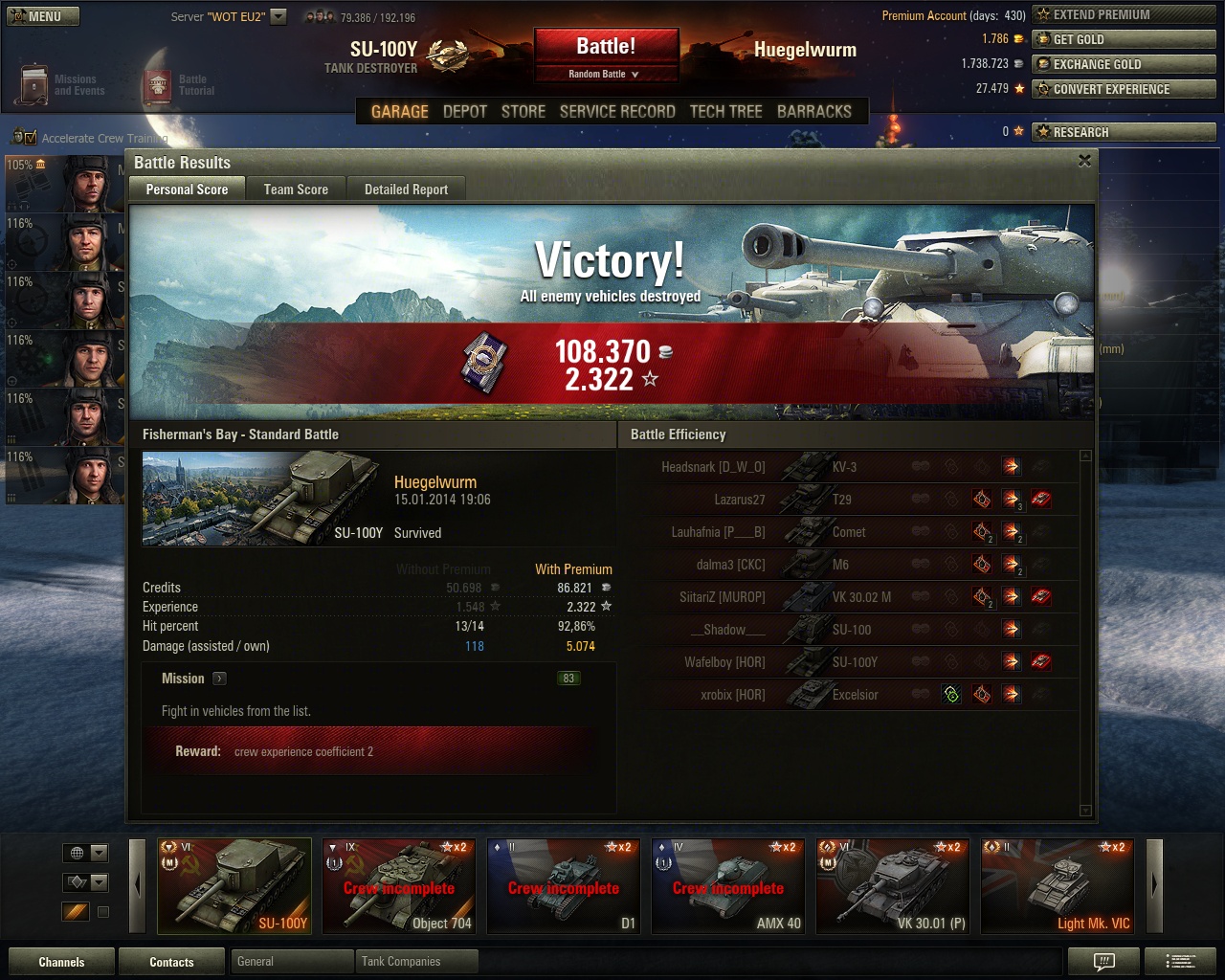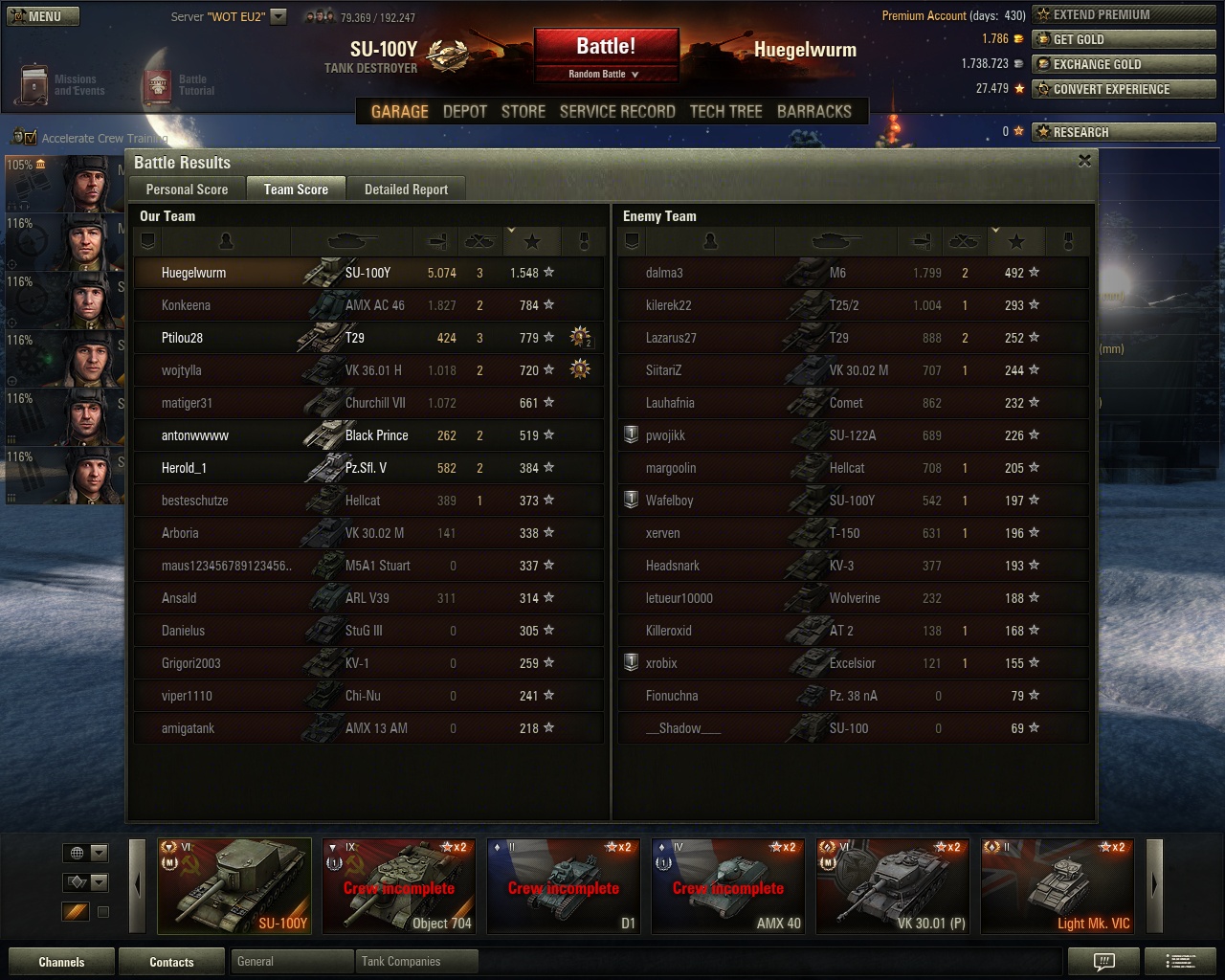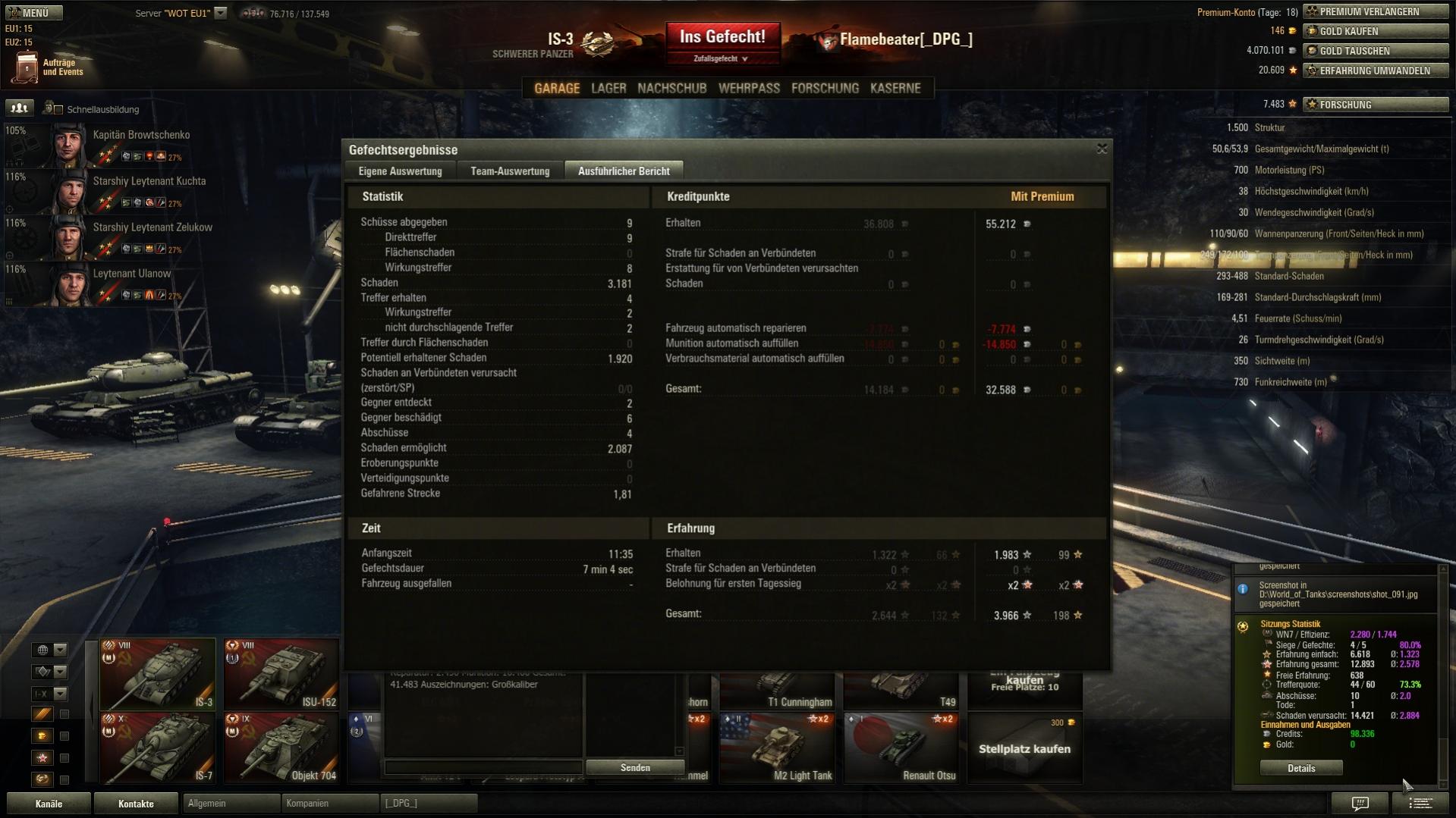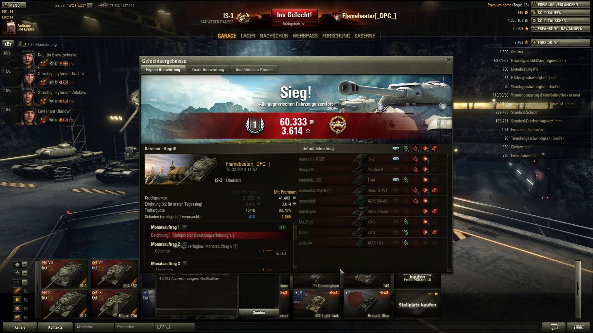 Und das erste mal seit längerem wieder über 2 k XP mit Radley-Walters dazu, da haben sich die 24 Stunden Premium schon gelohnt. Nur schade, dass sich der gegnerische Borsig versteckt hat, eine zweite Pool-Medaille wäre fein gewesen.