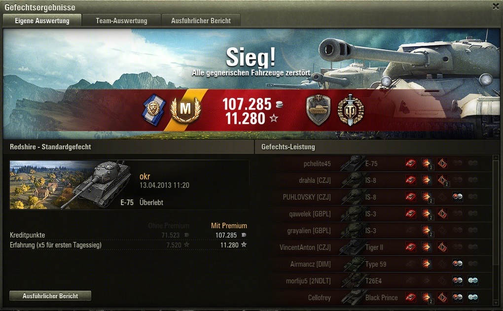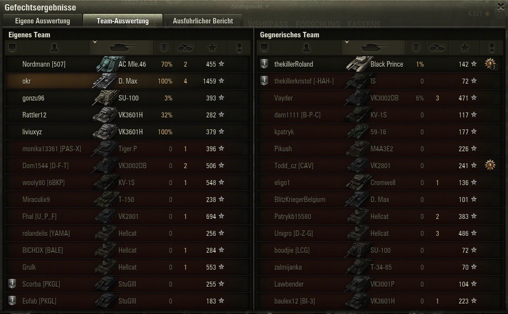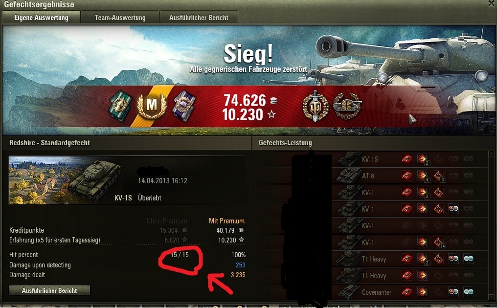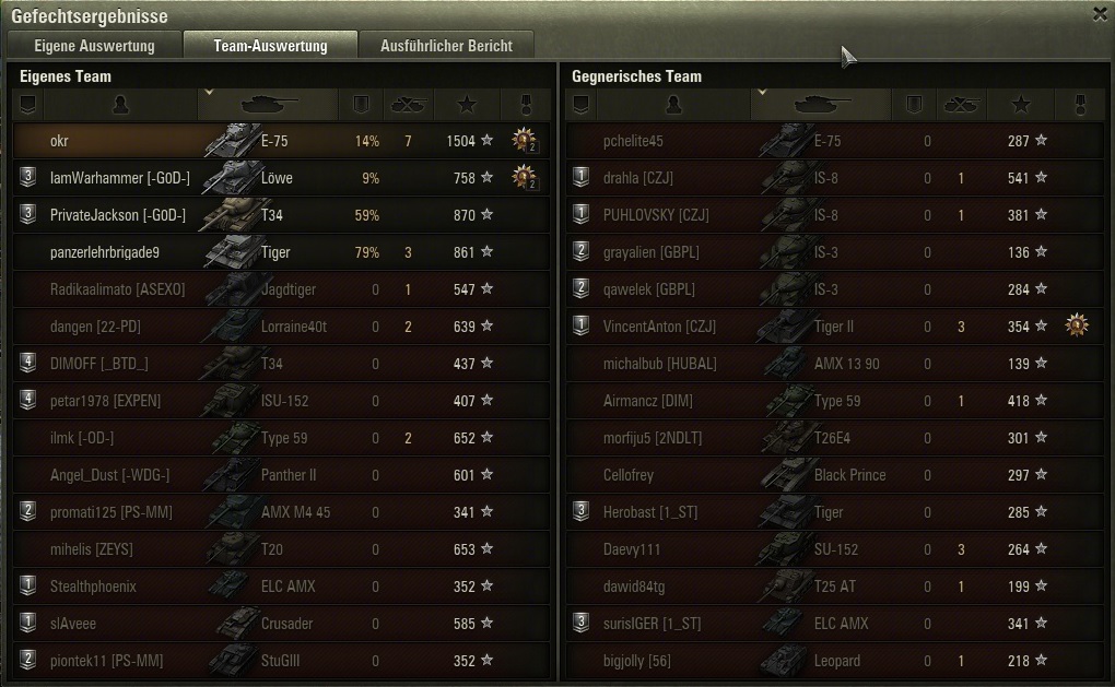 Irgendwann gab es dann nur noch nen ST-1 auf 4% und nen Foch155 (ich meine, der hat mit 100% "angefangen") und mich...