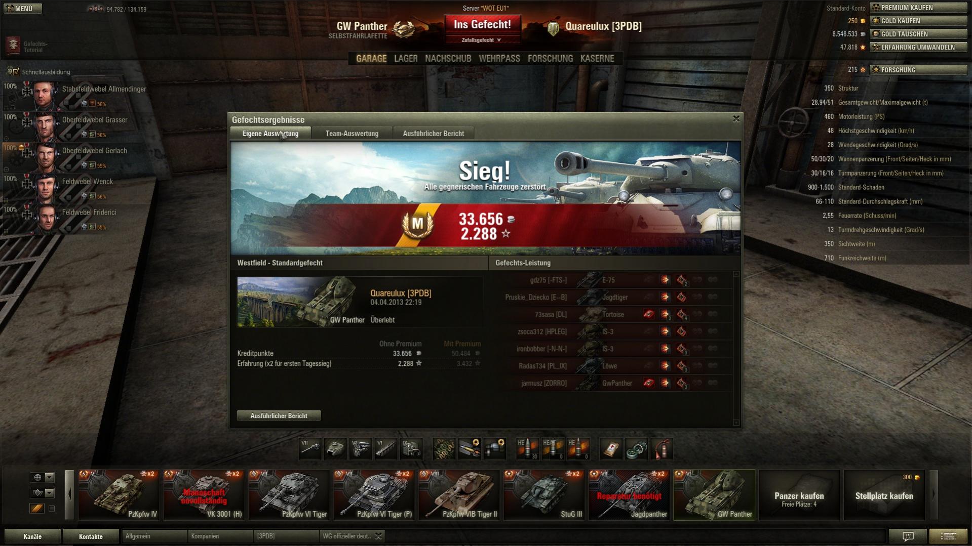 Hab grad im 288sten Spiel mit dem GW Panther endlich das Panzerass gewonnen