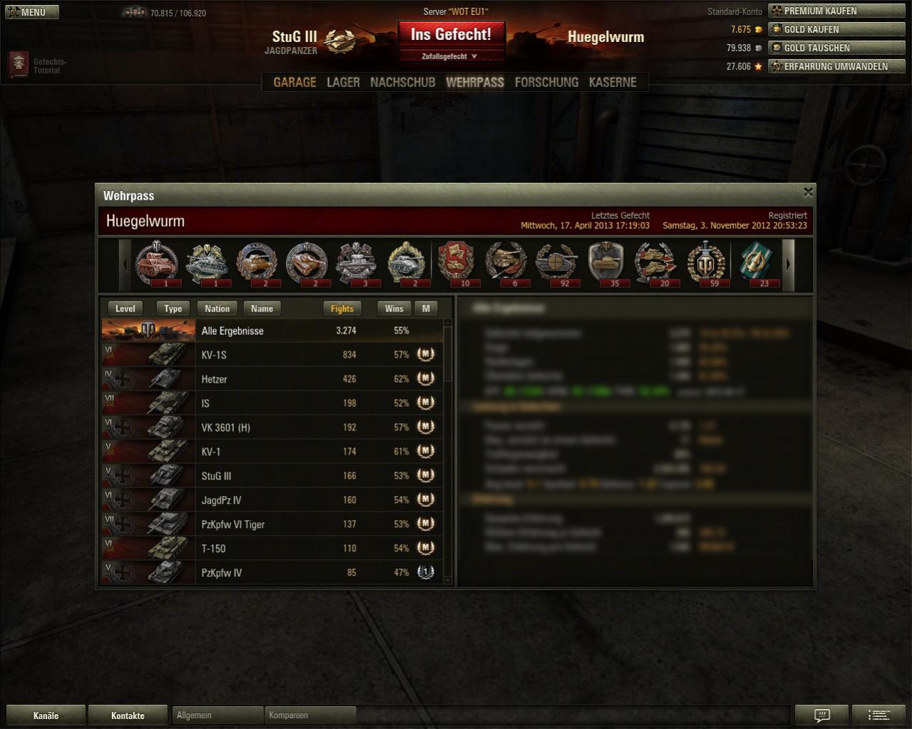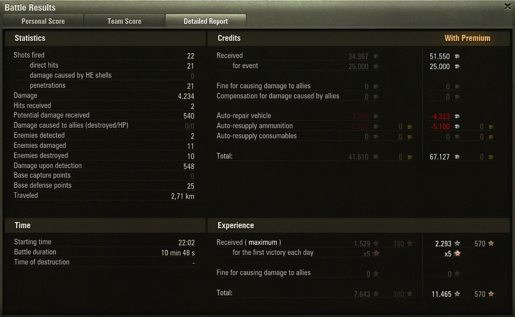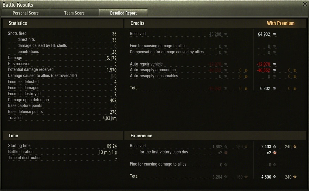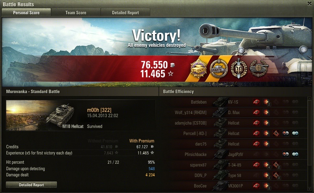 Battle Achievements: Pool's Medal, Kolobanov's Medal, Top Gun, Sniper