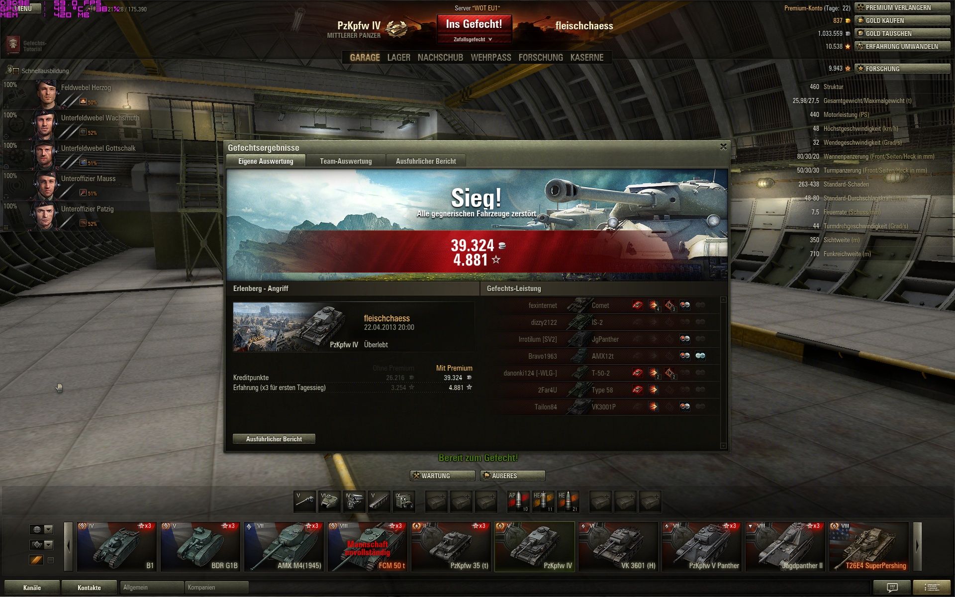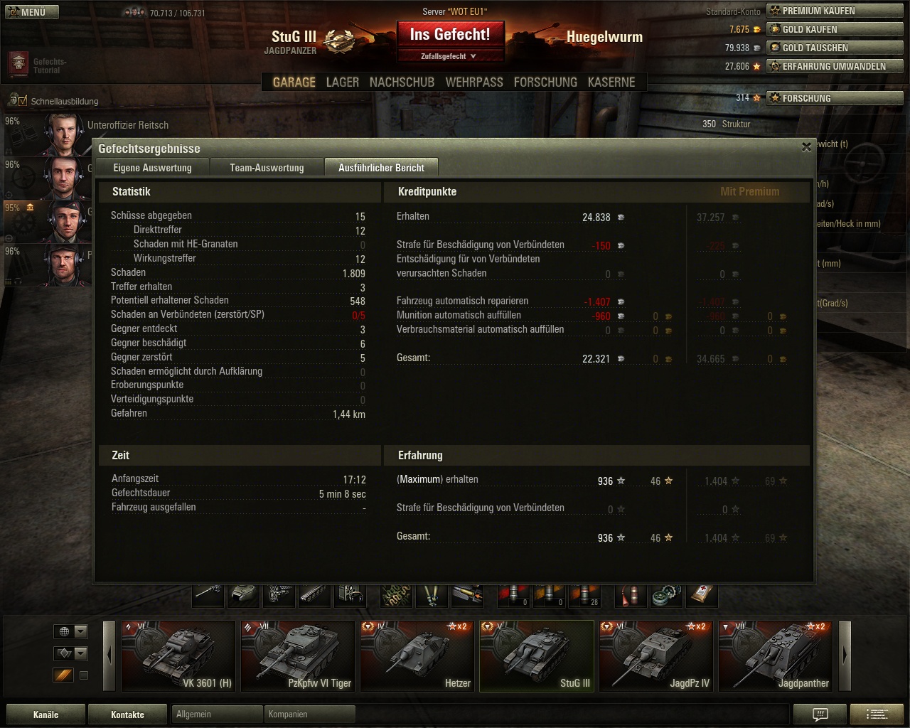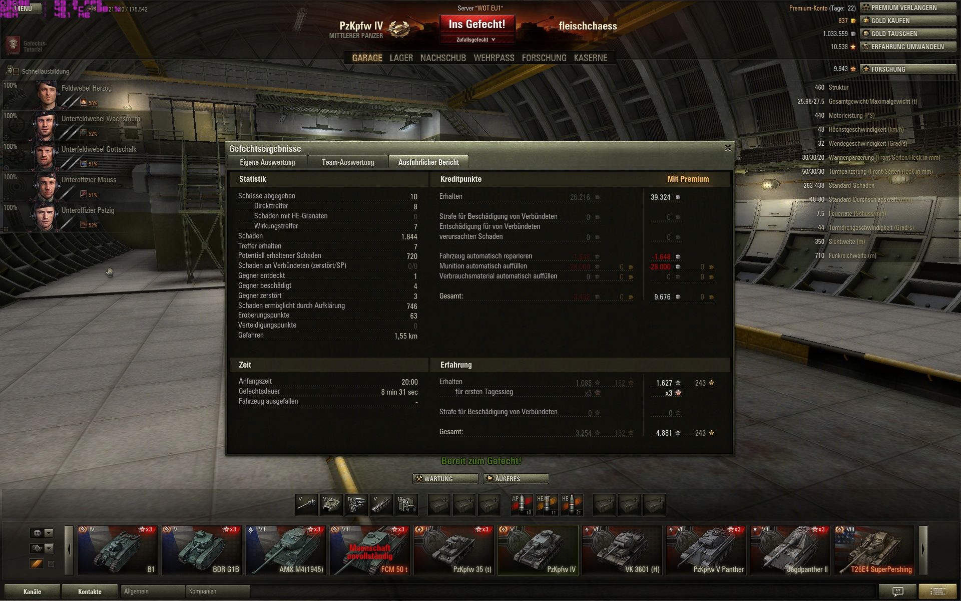 Battle Achievements: Pool's Medal, Kolobanov's Medal, Top Gun, Sniper