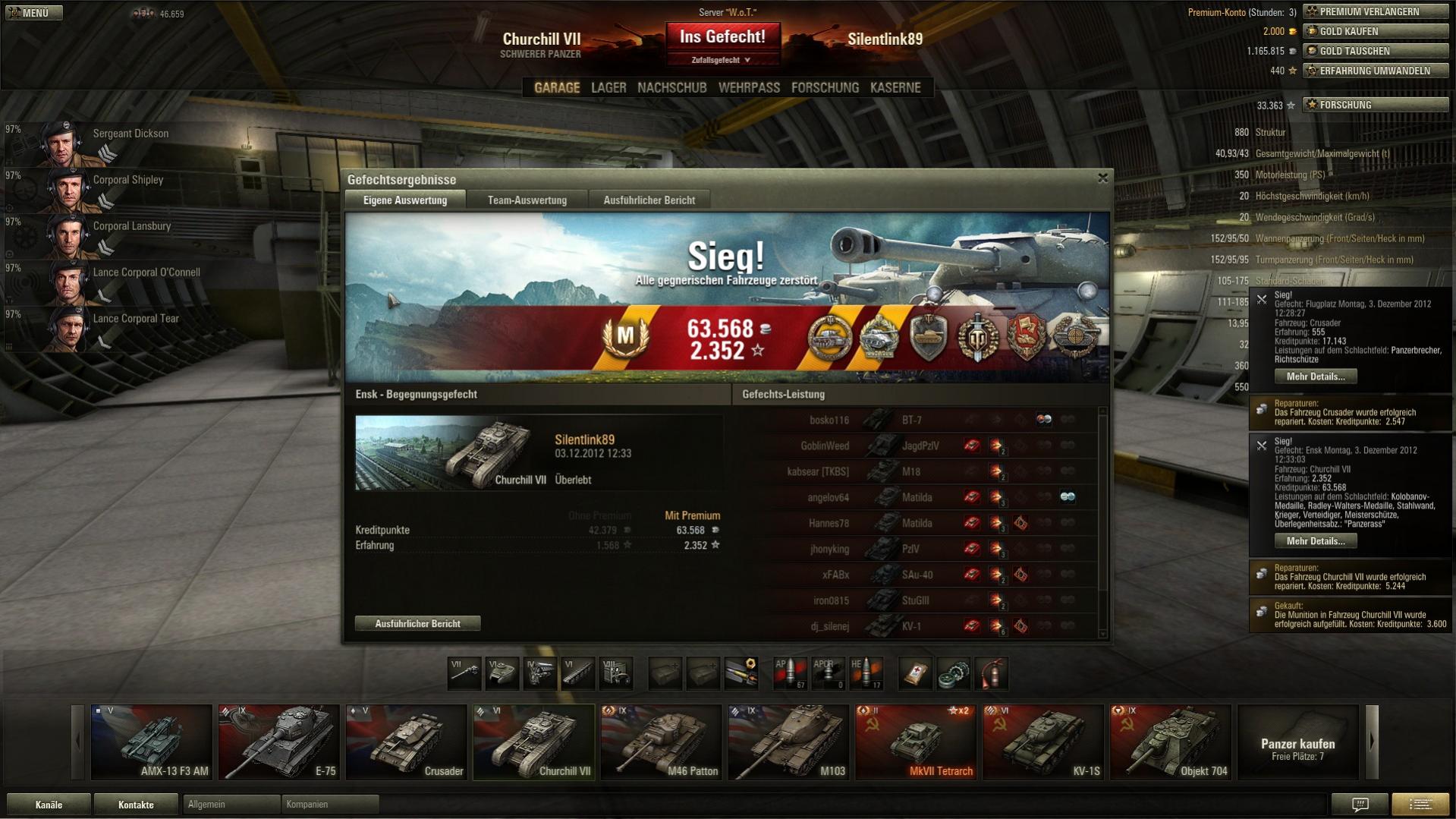 3. (die Version, wo die Briten erschienen)Kolobanov, Ace Badge, Radley Walters u.v.m im Tier6 Churchill - heute undenkbar mit der ganzen Premium Muni.