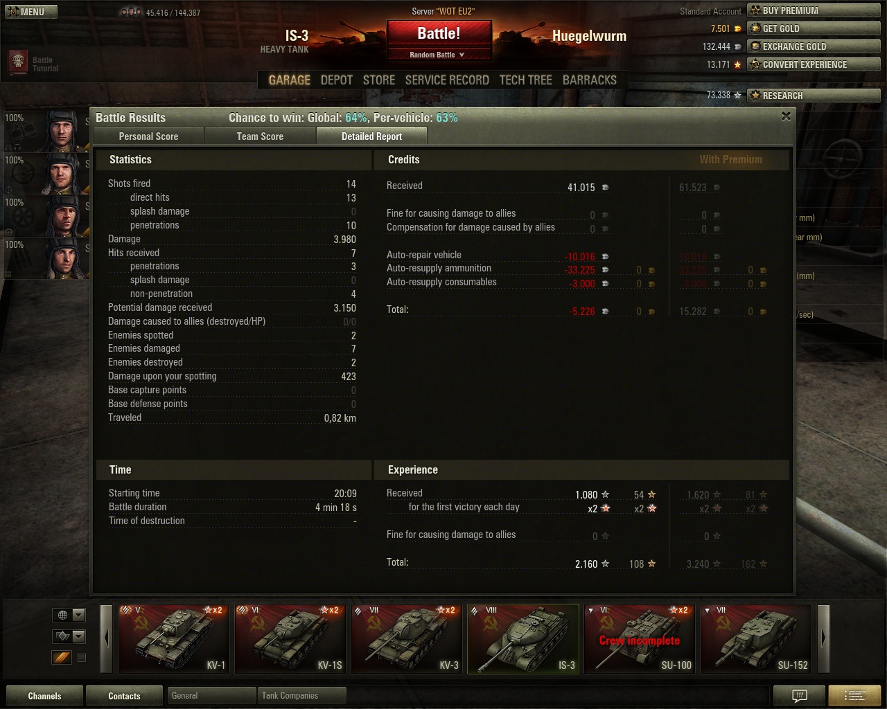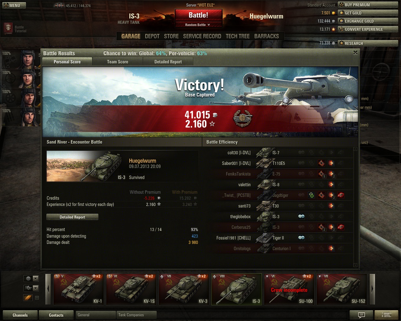 Man beachte die Ergebnisse der AFK IS-3 und IS-6