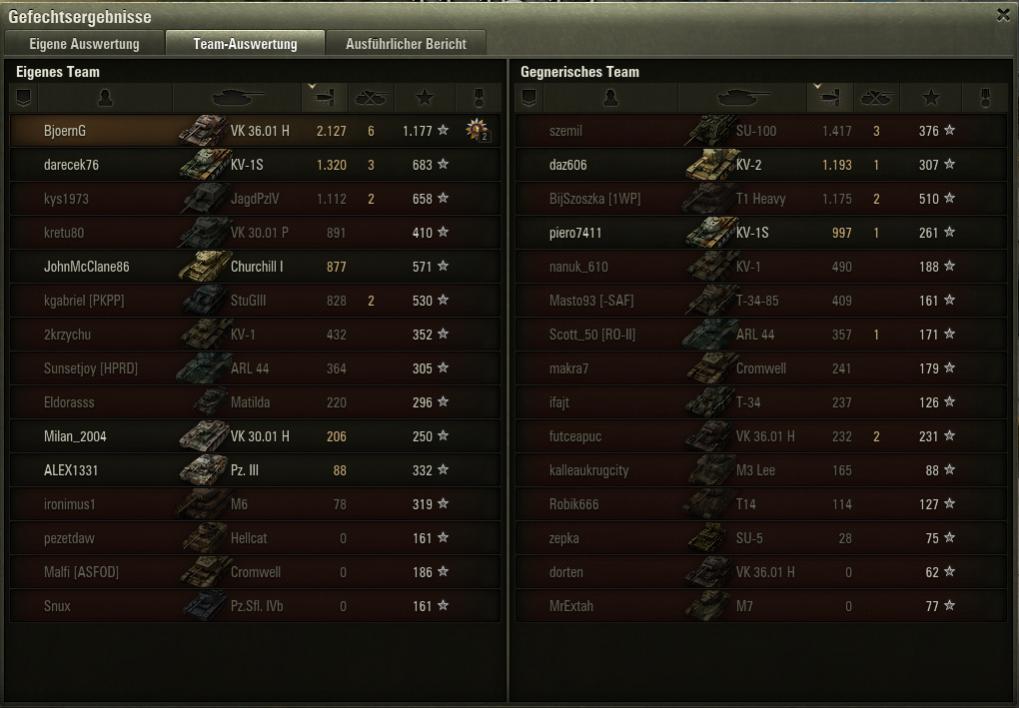 Ich weiß nicht, ob ich bei solchen Gefechten glücklich oder traurig sein soll... tier 10 und wer macht am meisten Schaden und bekommt die meisten XP, obwohl er nur mit einem Jagdtiger und Löwe zusammen eine Flanke hält, bei der mehr als das halbe gegnerische Team auftaucht?
