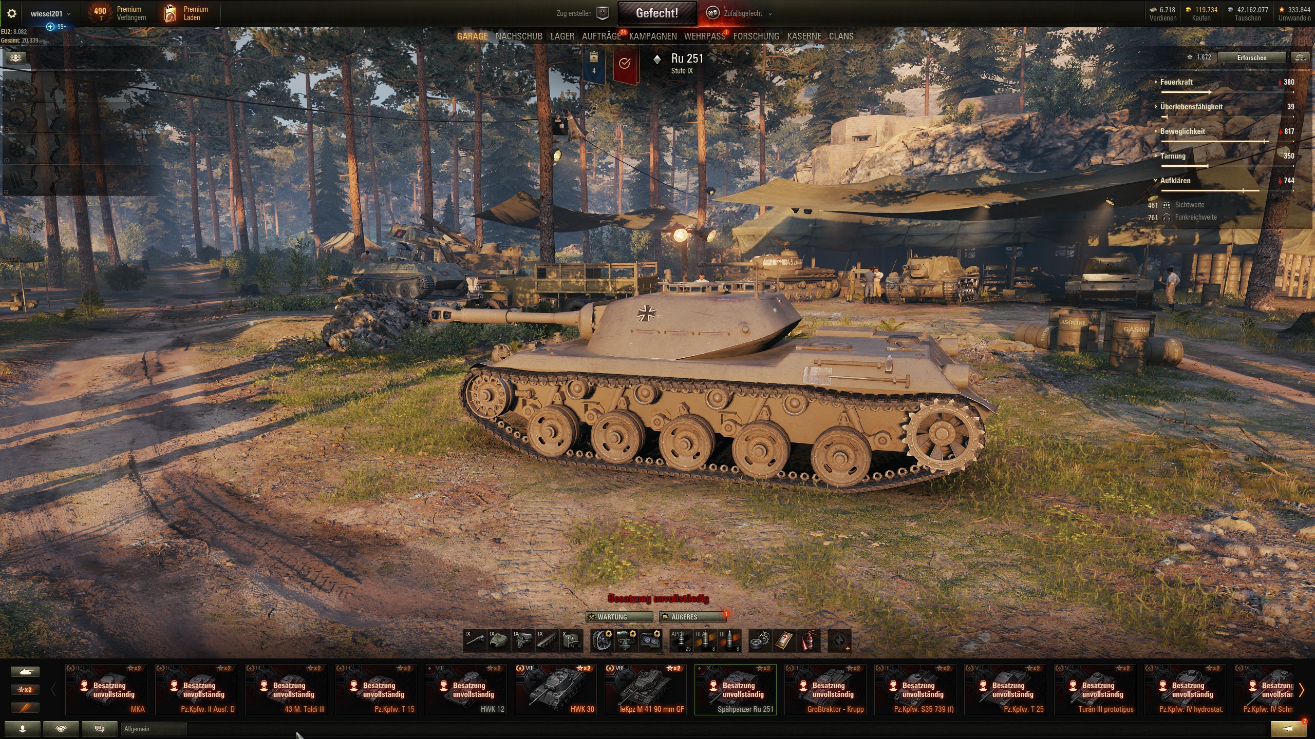 Übrigens hab ich den erst neuerdings aber auf'm EU-Server ist das ja schon seit Ewigkeiten der mitunter meist gefahrene T8er überhaupt. Kann ich gar nicht verstehen. Also bis jetzt bin ich mit dem Ding in normalen Gefechte noch gar nicht so warm geworden. Der hat halt einen so schlechten Tarnwert, dass man gefühlt permanent schon auf >400m aufgeht (nach dem Schießen eh) und Dank seiner nicht vorhandenen Panzerung on Kombination mit der großen Hitbox zieht er Kugeln auch noch an wie ein Magnet, wenn er aufgeht.