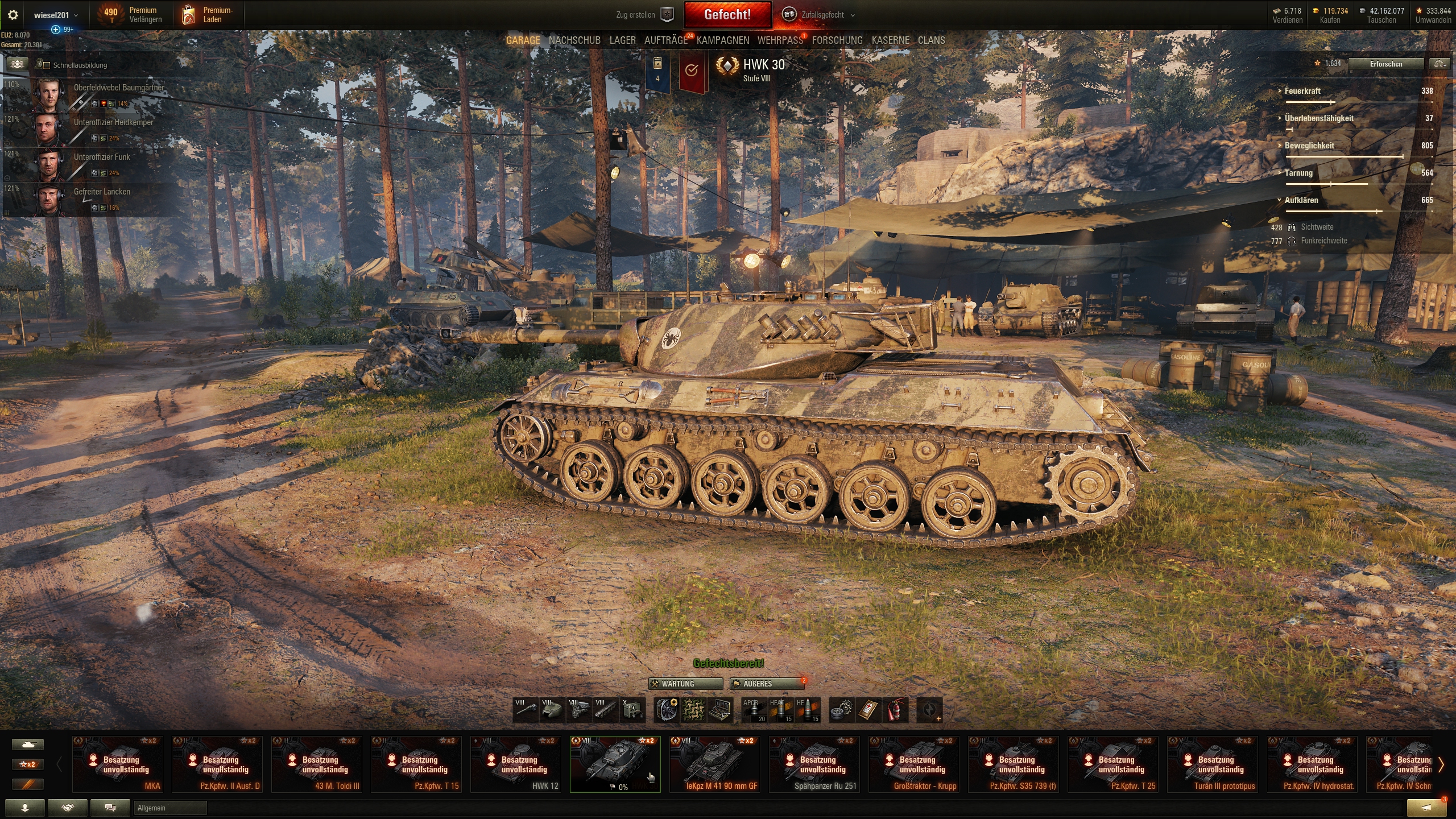 In Frontline hingegen einer der besten Panzer überhaupt imo. Da kann man die Mobilität mal so richtig ausspielen, der schlechte Tarnwert ist egal, weil man laufend auf >450m schießen kann und die sehr präzise Kanone macht sich da auch nützlich.