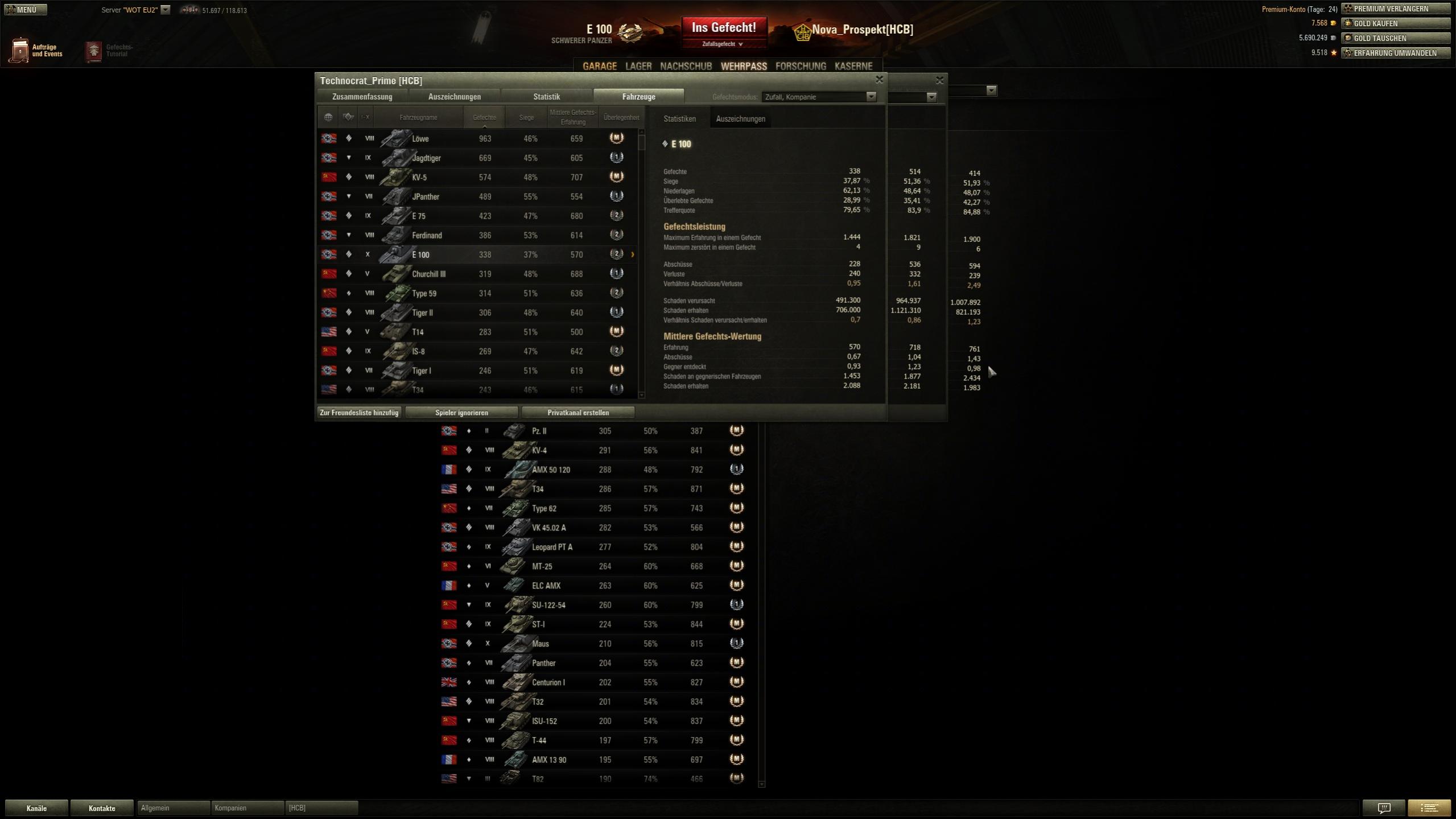Karre schrieb:Wenn es interessiert, meine e-100 wr ist höher. (57%) http://worldoftanks.eu/community/accounts/501060850-kcopy/ 985 gefechte mit e-100