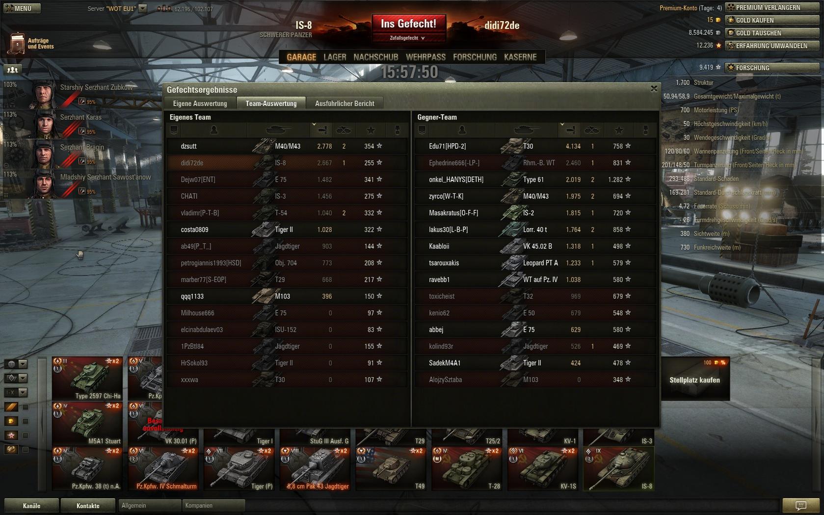 MikelMolto schrieb:Ich schaue meine Statistik nicht mehr an, weil das frustriert nur noch. Egal was man macht, man verliert. Die meiste Dmg von allen gemacht (auch gegenüber dem Sieger Team) und trotzdem verloren. Zur Zeit fahren Leute rum, die echt null Ahnung haben. Die sitzen auch in T10 und fahren mit der Maus durch die Gegend.