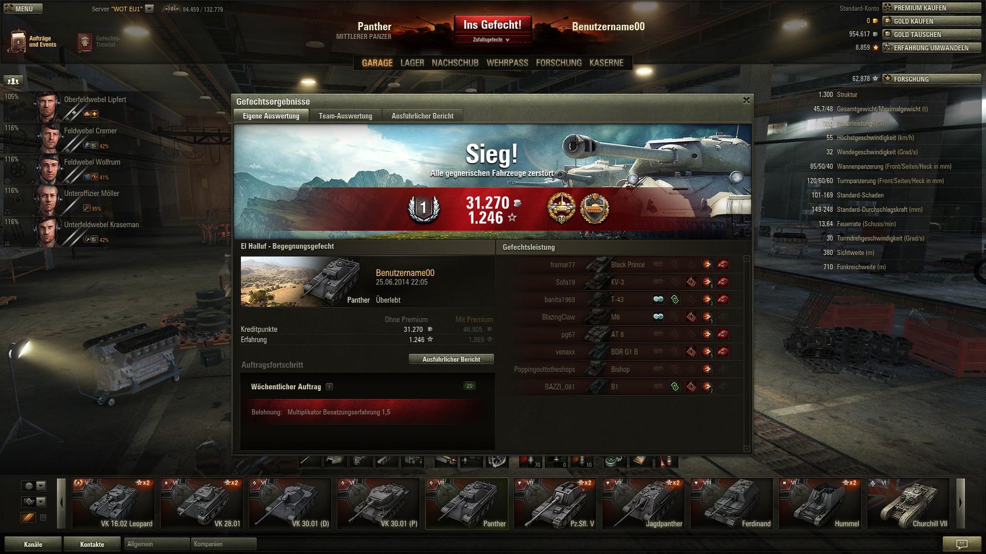 Ich bin grad am farmen für den T32. Dauert noch sehr lange und da mir auf'm Panther nur noch ca. 40k XP zum Tiger 2 fehlen, die ich bis dahin sicher haben werde bin ich am überlegen: Tiger II oder T32? Was man vllt. noch sagen könnte: Auf'm Tiger 2 muss ich alles außer den Funkis erforschen und beim T32 natürlich nur Turm und Ketten. Was die Nachfolger anbelangt bin ich am E75 interssiert (am E100 nicht) und die T32 - Nachfolger interessieren mich nicht so (kenne sie aber auch nur als Gegner)