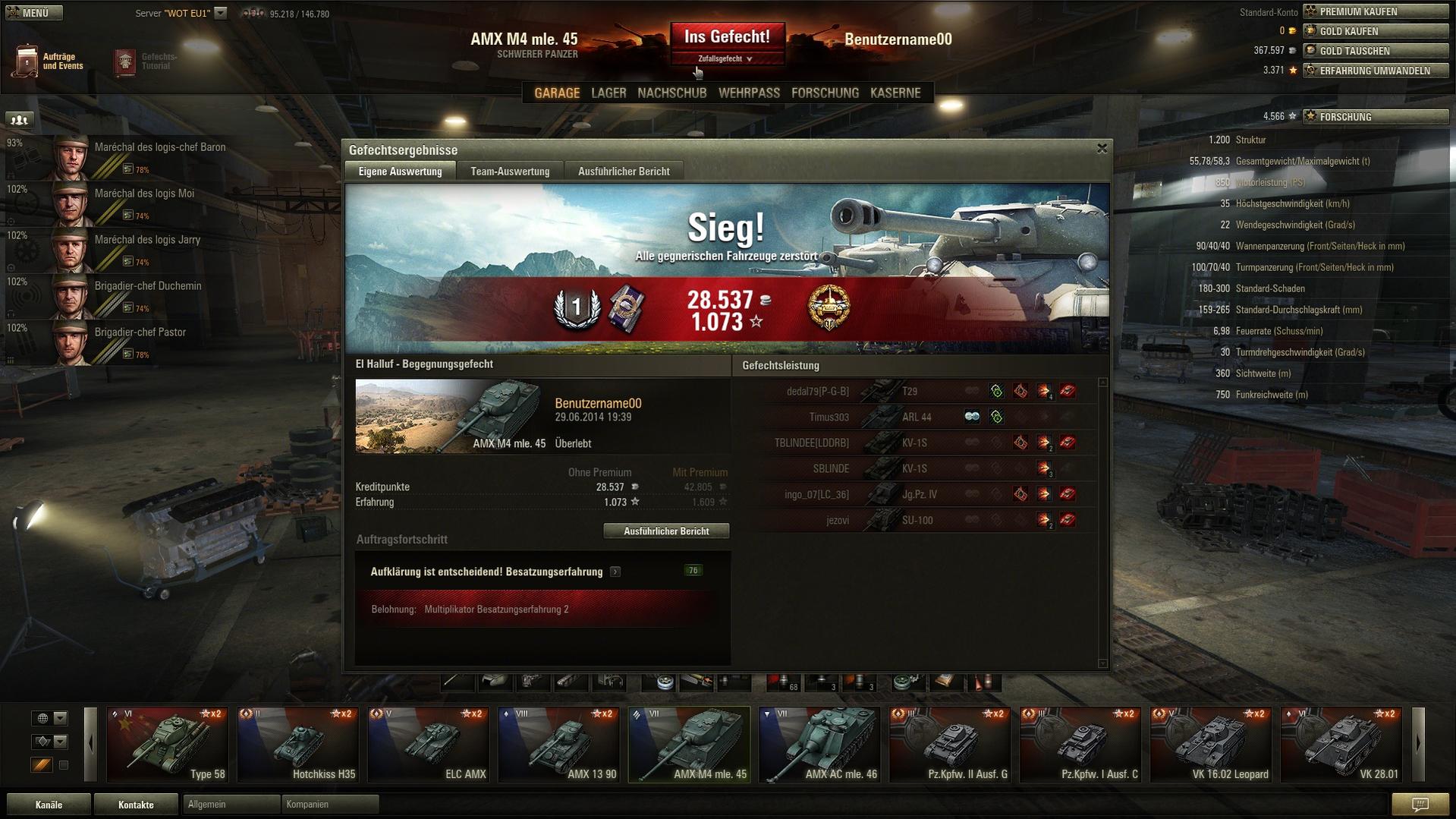 So, inzwischen bin ich mit dem AMX M4 so langsam warm geworden. Ich spiele ihn als Frontpanzer wie einen HT, bin dabei aber einfach etwas vorsichtiger. Scheint mir so am besten zu gelingen.