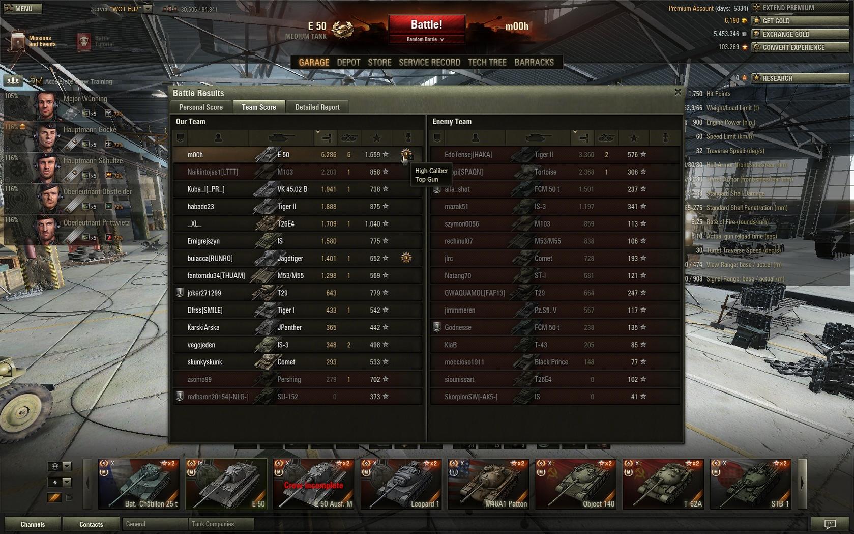 Er fährt ja wirklich oft an, schaut gerade so über die Kuppe, drückt ab und ist schon wieder am Rückwärtsfahren. Bei mir ist/war das in manchen Situationen eher so, dass ich anfahre, lasse etwas auf den Gegner einzielen, drücke ab und fahre Zurück. Das macht halt ca. 0,75-1 Sekunde unterschied ggü. seiner Spielweise aus.(wenn es nur das währe ;P ).