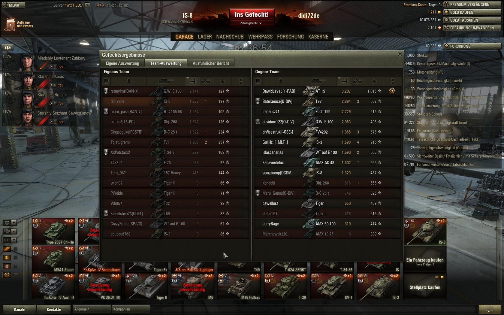 ich sollte echt mal wieder XVM + globale Win Chance installieren. Sonst sieht mein Schaden in totalen 3 Minuten Niederlagen immer richtig schlecht aus.