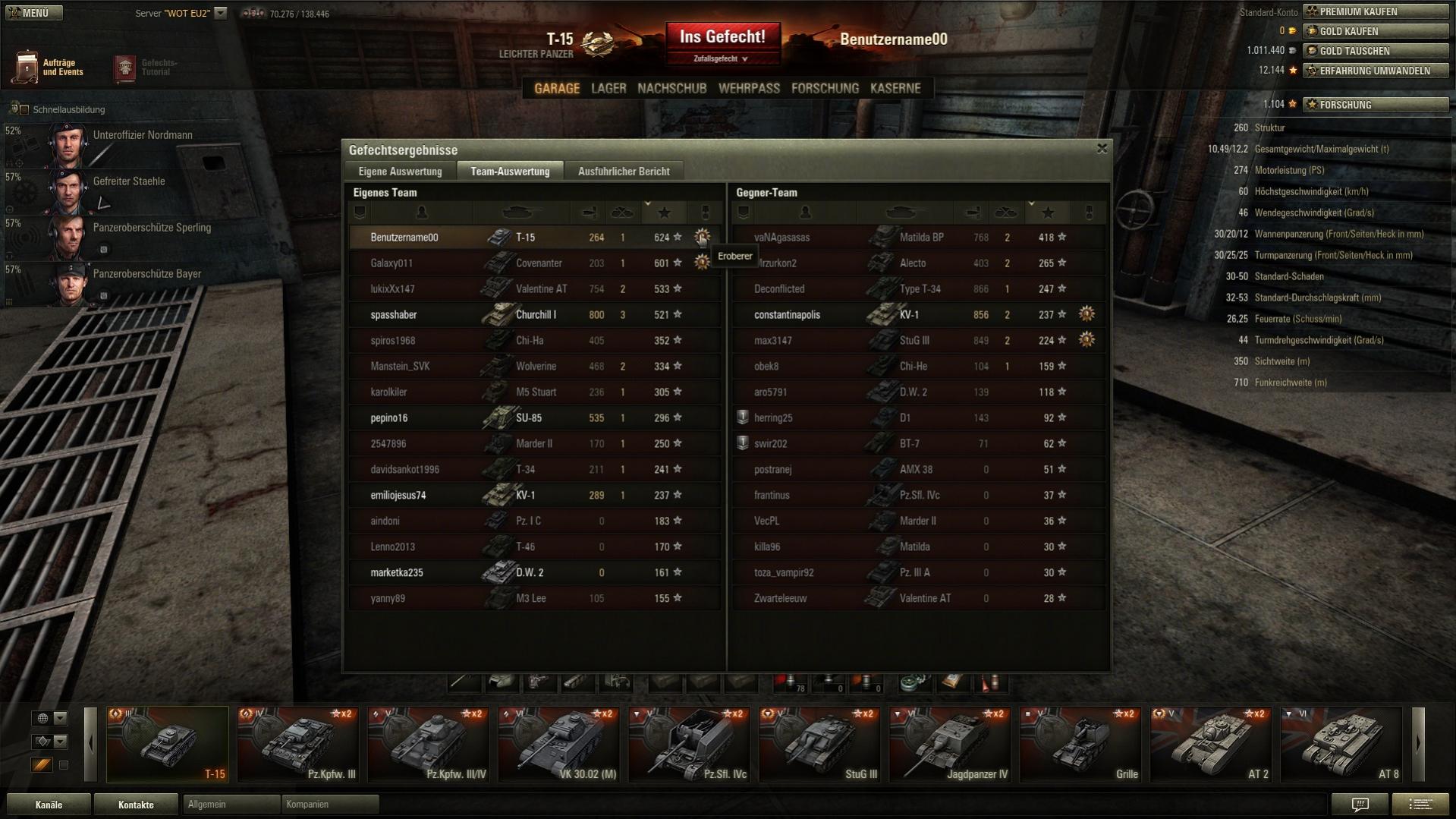 lol, erbarmungslos dämlich... Kriegen es nicht gebacken einen T-15 in einer T5 Runde vom capen abzuhalten, wenn das Team des T-15 so dumm ist, dass kaum einer der T5 Panzer mehr als ein paar Meter von der base weggefahren ist...