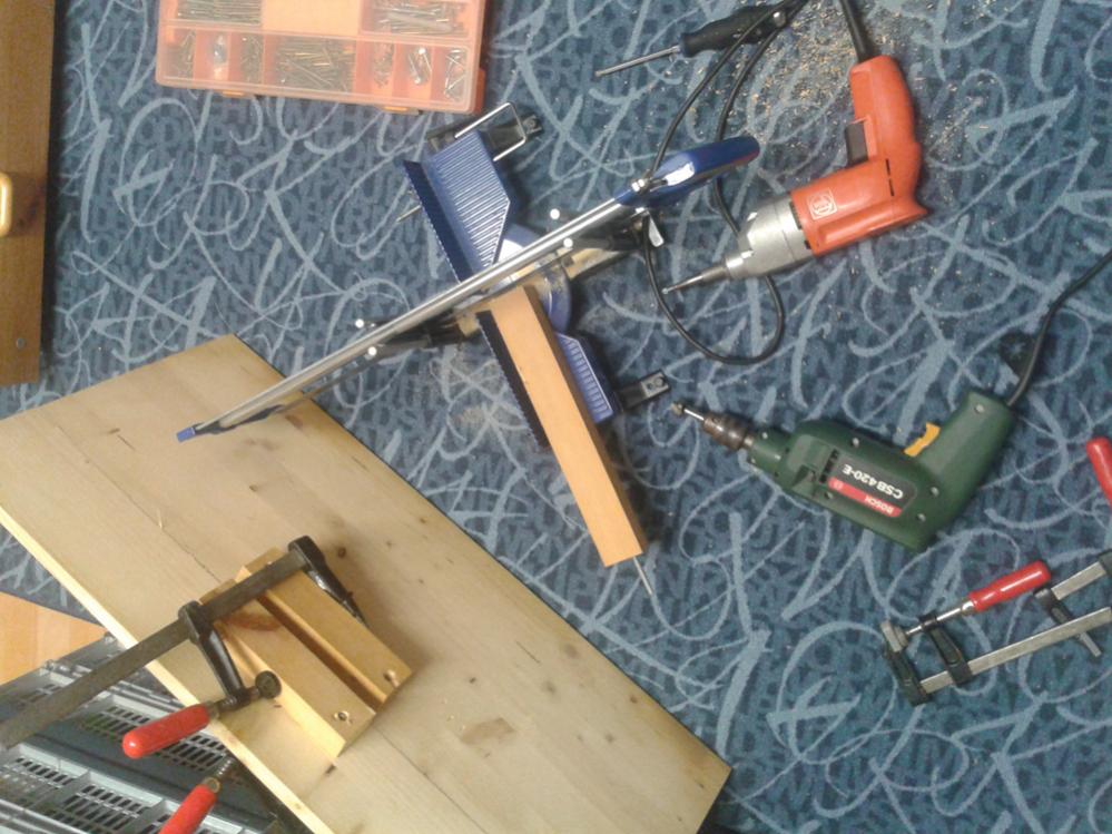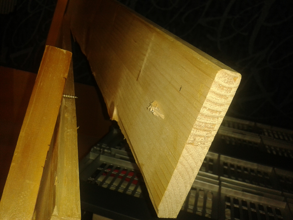Sieht aus, als hätte es beim Brett nicht gereicht, einfach 2 Leisten als Verstärkung anzuschrauben... wenn der Holzleim trocken ist, werde ich jetzt 4 Leisten festkleben und mit je 4 Schrauben verschrauben, dann dürfte ich wieder in Ruhe WoT spielen können...