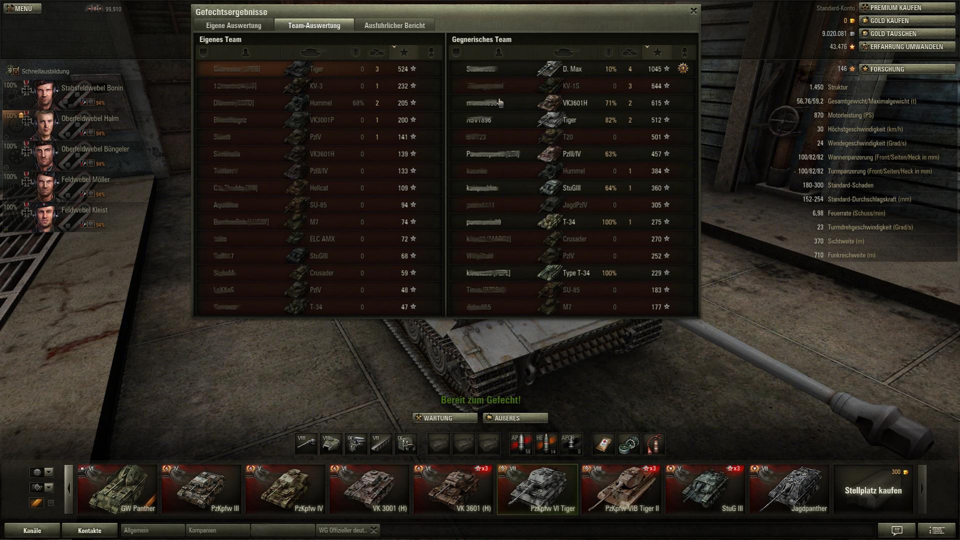 Trotz des etwas "gewöhnungsbedürftigen" Wochenendes (scheinbar waren nachmittags nur Leute von 12-13 Jahren unterwegs), habe ich endlich den 4. Skill auf dem StuG geschafft. Wirklich sehr hartes Brot, die letzten Prozente voll zu bekommen.