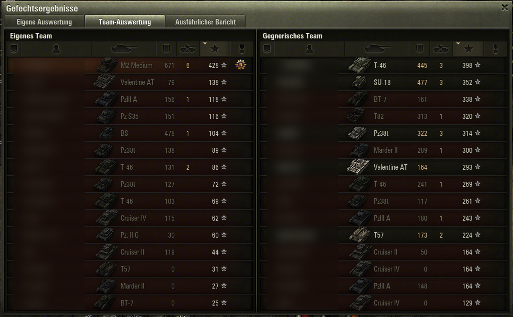 ...was nicht immer etwas aussagt. Wenn es einem z.B. so ergeht wie mir mit meiner Runde mit dem Hetzer mit 11 Abschüssen. Das gegnerische Team war einfach....sagen wir nicht sehr begabt.wiesel201 schrieb:Darum solltest Du Dir keine Gedanken machen. Egal ob es mit Tier 1 oder Tier 10 war: 11 Kills bedeuten, dass nur vier Gegner Dich überlebt haben.![]()