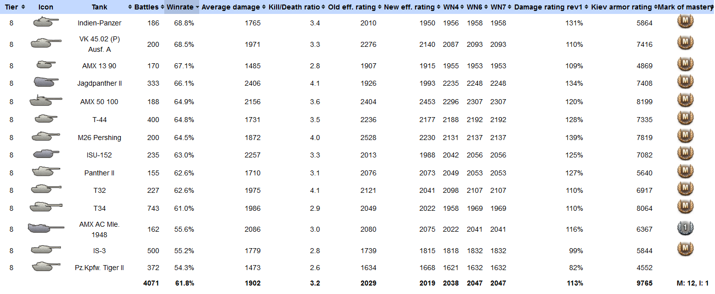 Das kommt immer auf den Tank an, wenn man den 8er normal durchspielt, also auch im Stock Zustand + er ist langsam, dann hat man selten "locker" 65%