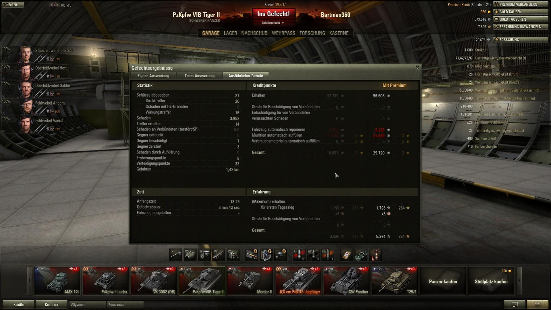 Bei mir ist der SP übrigens von den Durchschnitts-XP an dritter Stelle, nach dem T29 und dem Jagdpanther II. Angesichts seiner Kanone eigentlich gar nicht zu erwarten.