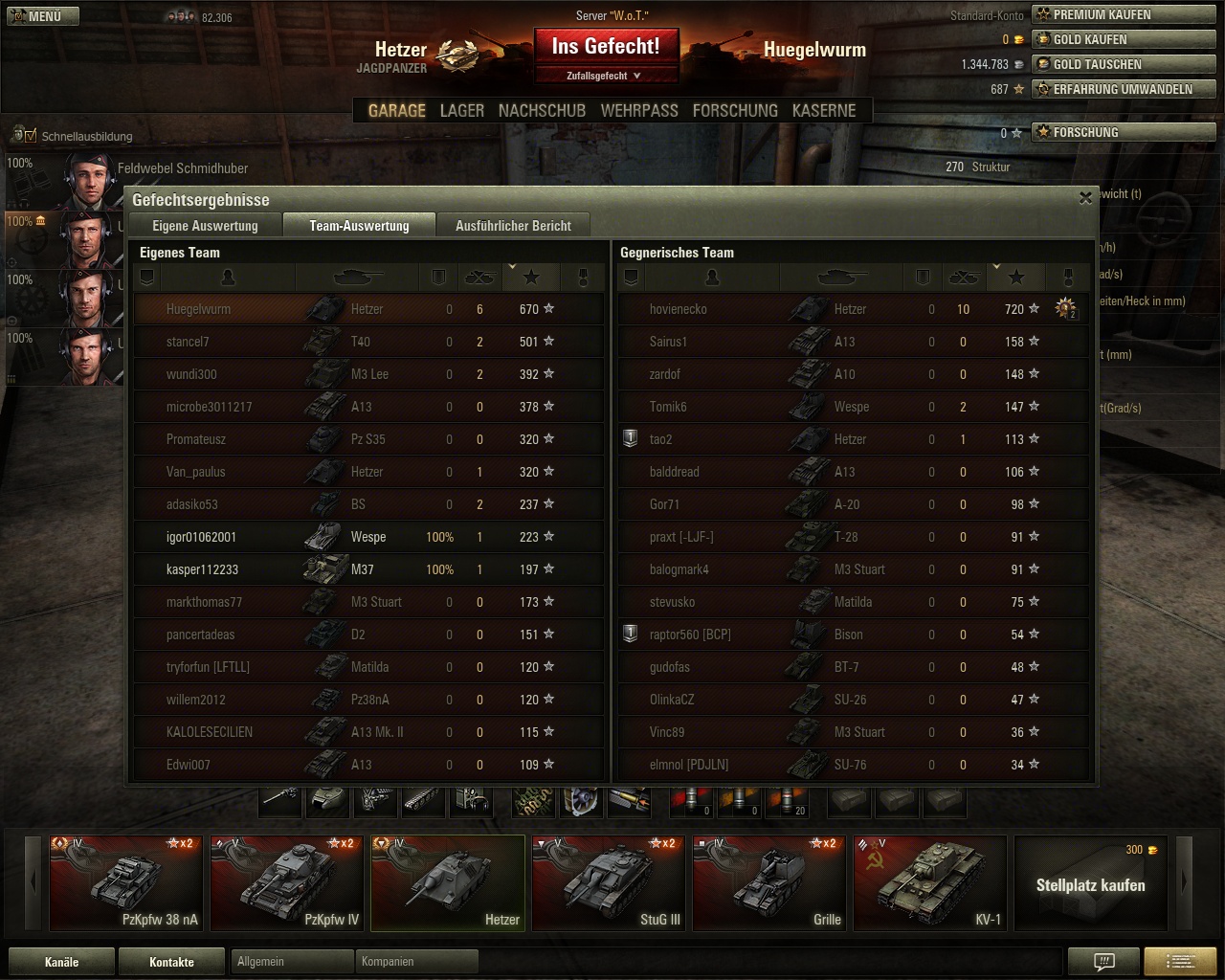 (Nicht falsch verstehen, ich will das nicht als DEN Wert hinstellen, mir ist ebenso klar, dass man oft lange grinden muss, bis man eine brauchbare Waffe hat [VK4502B], aber gerade dadurch, dass man viel Schaden hinaushämmert, zeigt man mE, dass man in der Lage ist, ausreichend taktisches Gespür anzuwenden, um sowohl länger am Leben zu sein als auch im selben Moment dem Team zu nutzen.