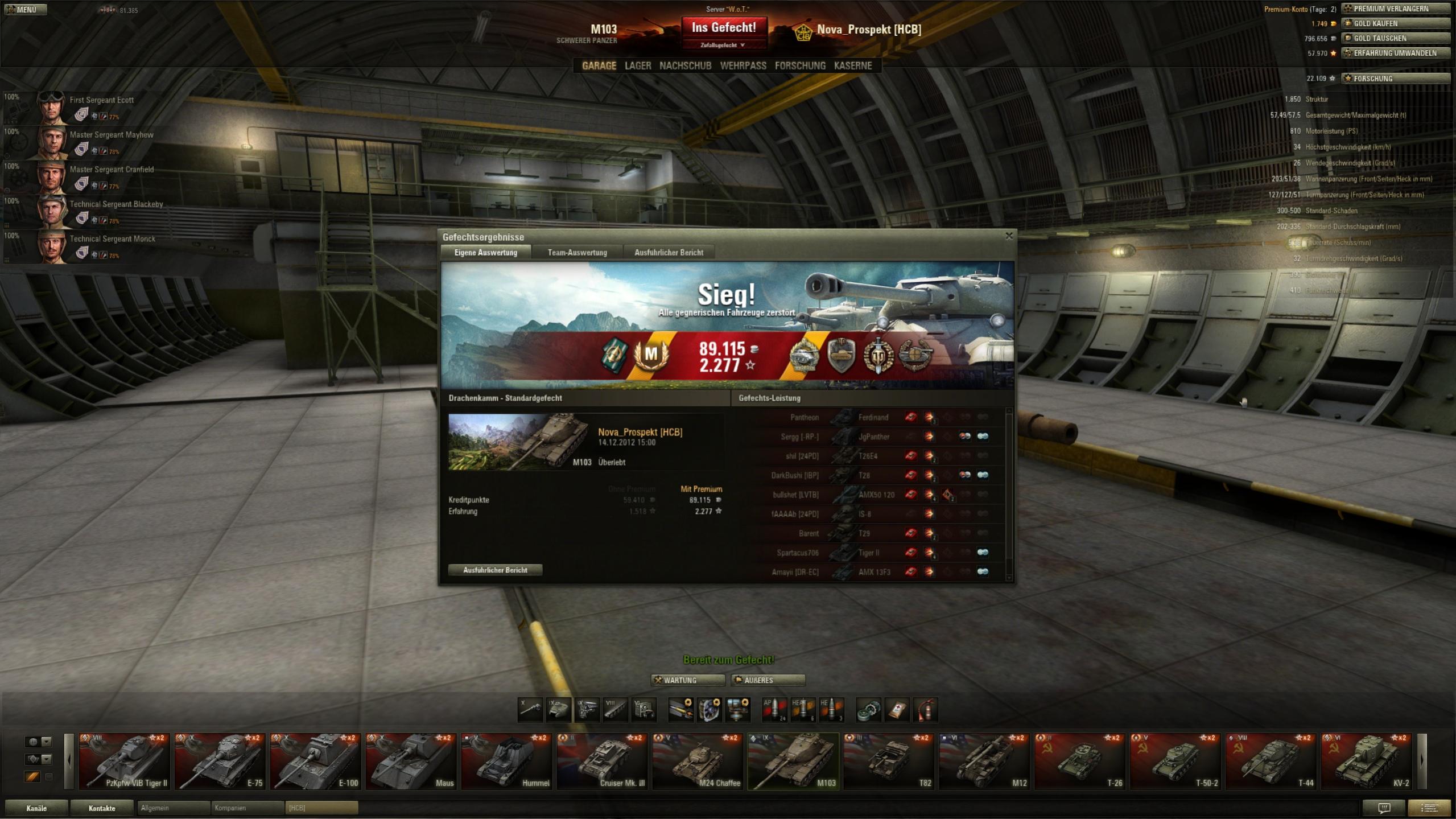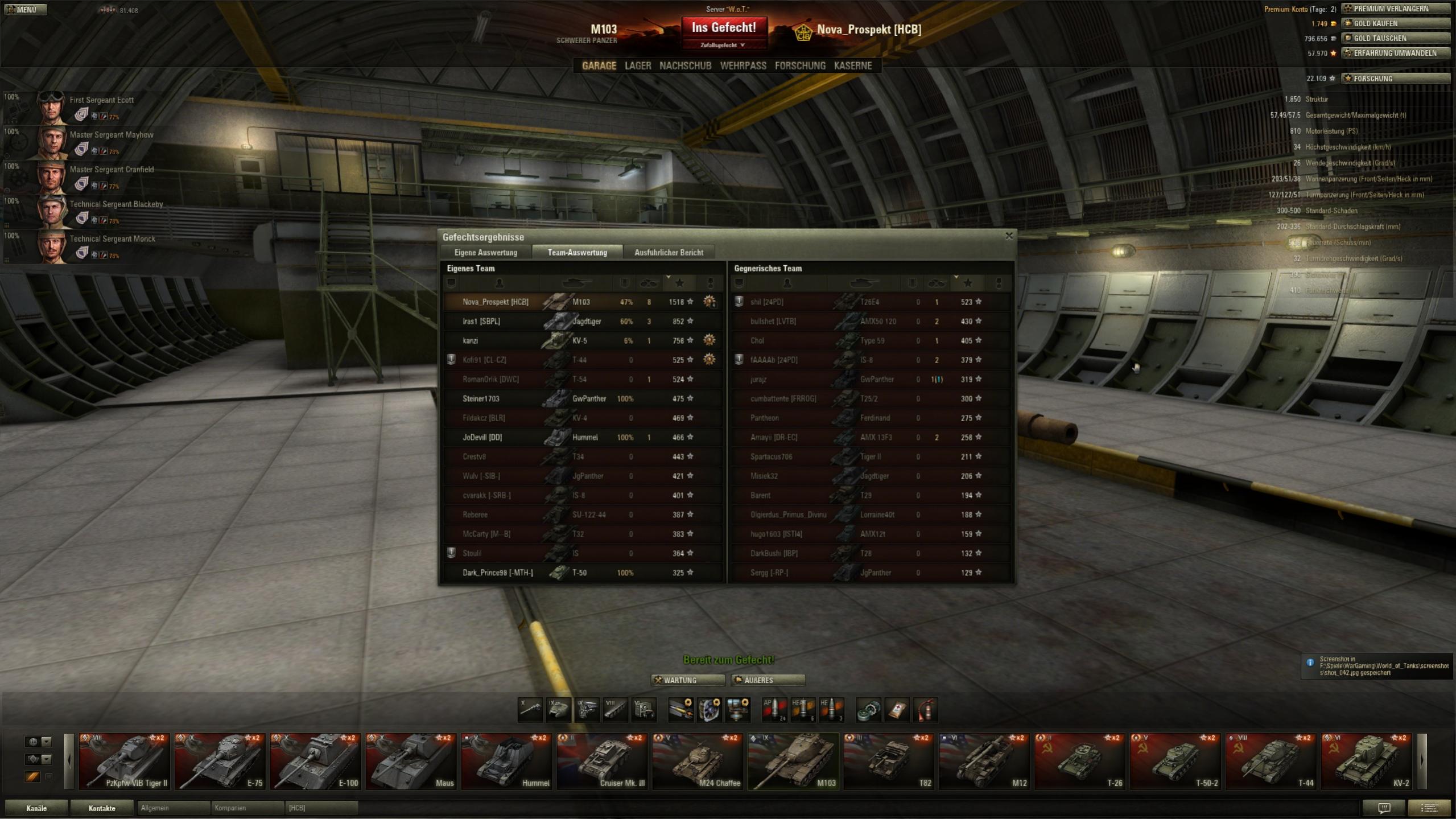 Den Fetten Fettsack habe ich dabei auch getroffen. Er ist im E-75 unterwegs gewesen und hat 5 abgeknallt. Bei mir waren es zwar nur 4, aber wenn der IS-8 noch geplatzt wäre, hätten es auch mehr sein können. Den T32 konnte ich am Ende dann nicht mehr abstauben, da der ständig vor und zurück gefahren ist. Dann hat ihn sich der Fettsack geschnappt.