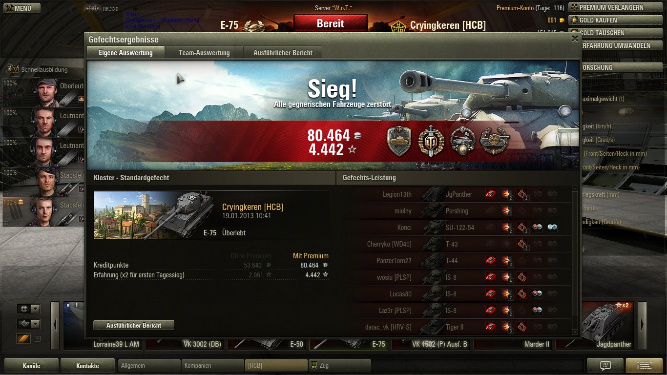 achja, ich wollte ja was zeigen. Ohne Premium hätte ich minus gemacht! Und das mit normaler Munition -.-