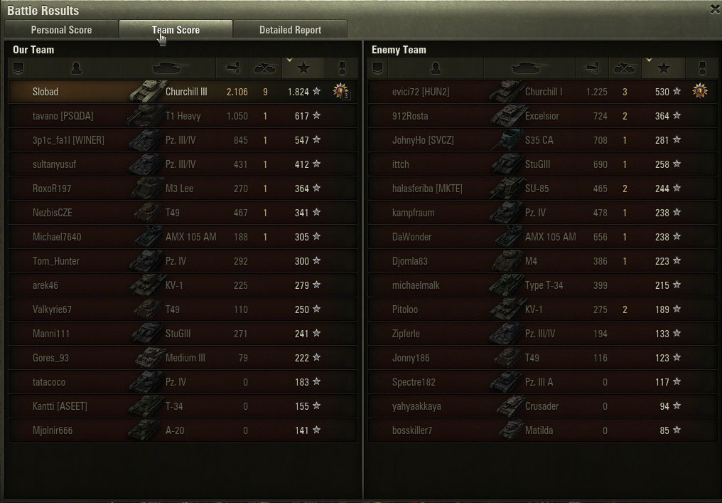 Ist Kollegen mal im KV-5 passiert - er hatte zu dem Zeitpunkt 7 Kills und knapp 5k Schaden, war der einzige der noch aus seinem Team am Leben war und ein Teammate meinte dann auch "KV-5 Noob!". Es war ein sehr lustiges Replay