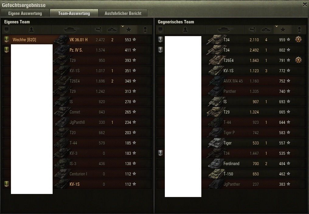Das zeigt mal deutlich, wir gut der MM mitterweile geworden ist. Der hat es doch glatt geschafft, Wechhe auszugleichen...Wechhe schrieb:Die haben ein Toptier Platoon, einen 8er und einen 7er mehr - wir damit 4 6er, die nur 2 6er Panzer.