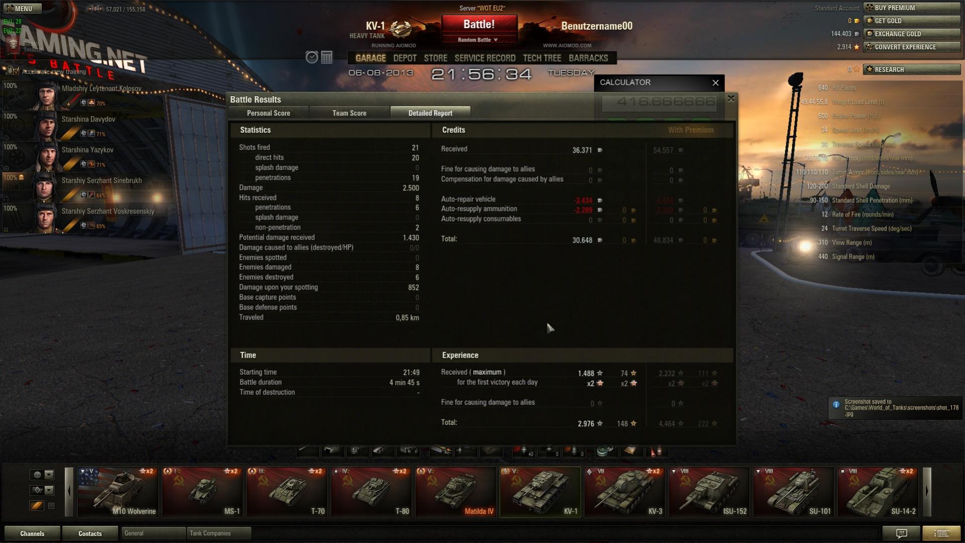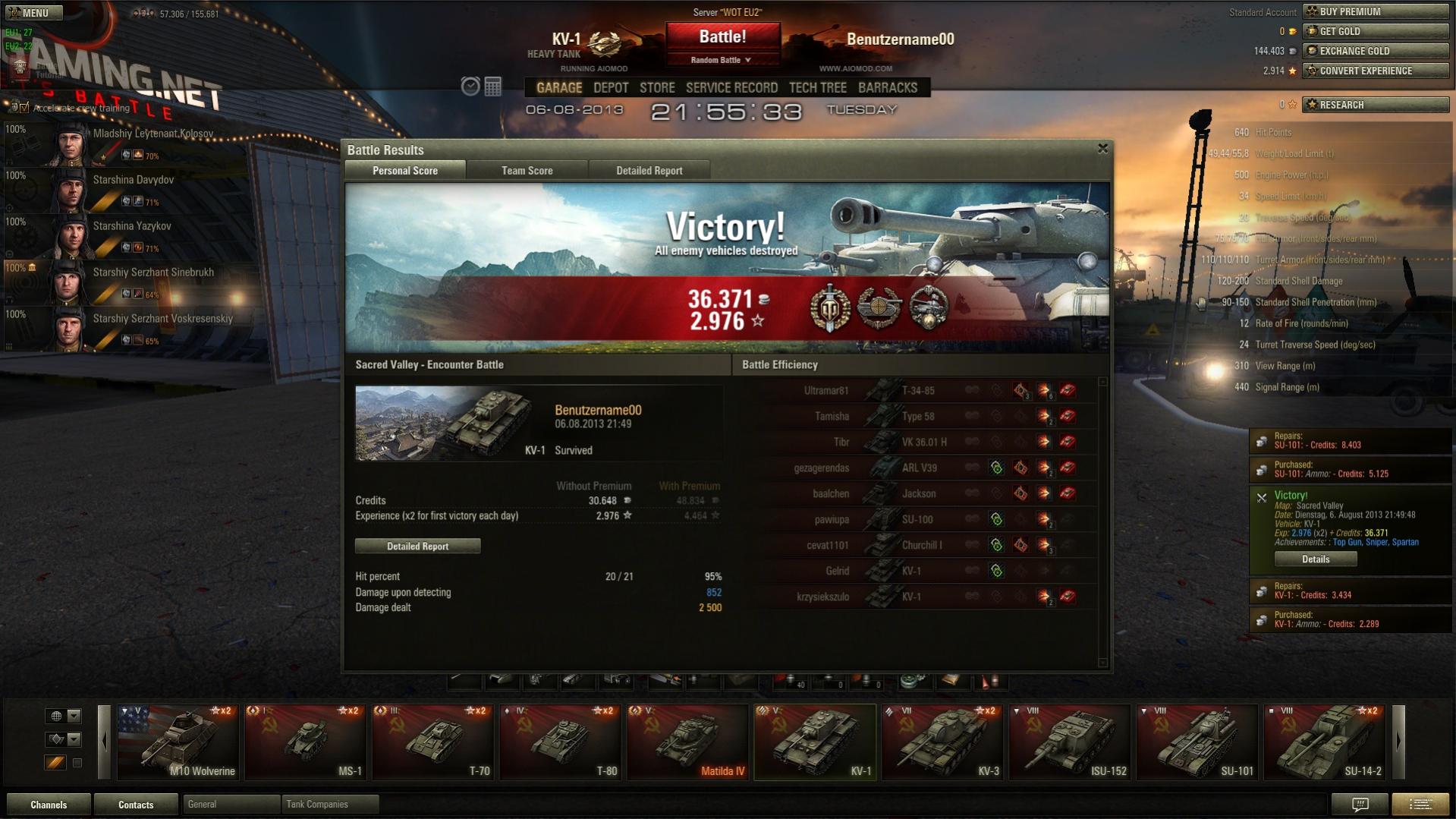 Heute weniger, aus irgendeinem Grund hab ich heute auch schlechter als sonst gespielt... (ich vermute aufgrund der dmg-Gier, die man beim Spielen der ISU-152 automatisch hat und der daraus resultierenden unvorsichtigen Spielweise)