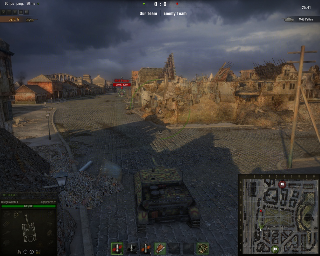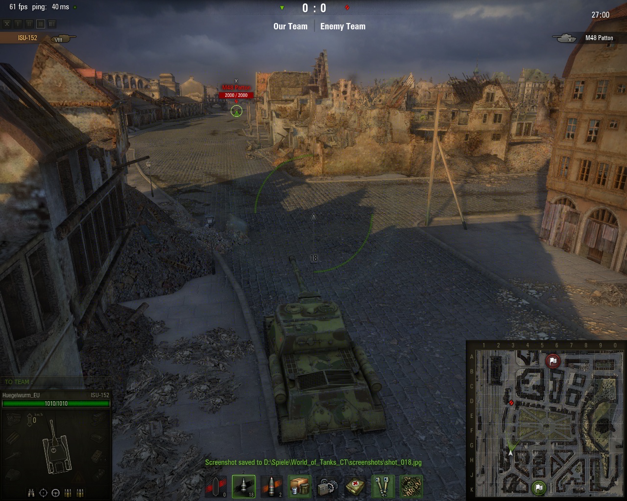 In allen Tests stand ich mit der ISU / dem JP auf offenem Feld auf Himmelsdorf still bis sich das Tarnnetz aktiviert hat und anschließend hat sich der Patton Meter für Meter genähert, bis ich gespottet war.