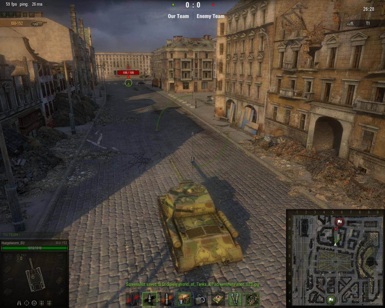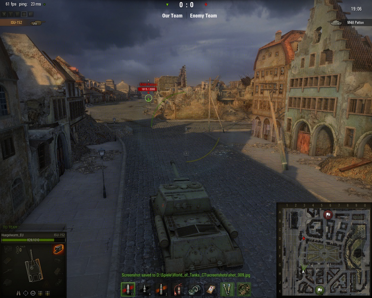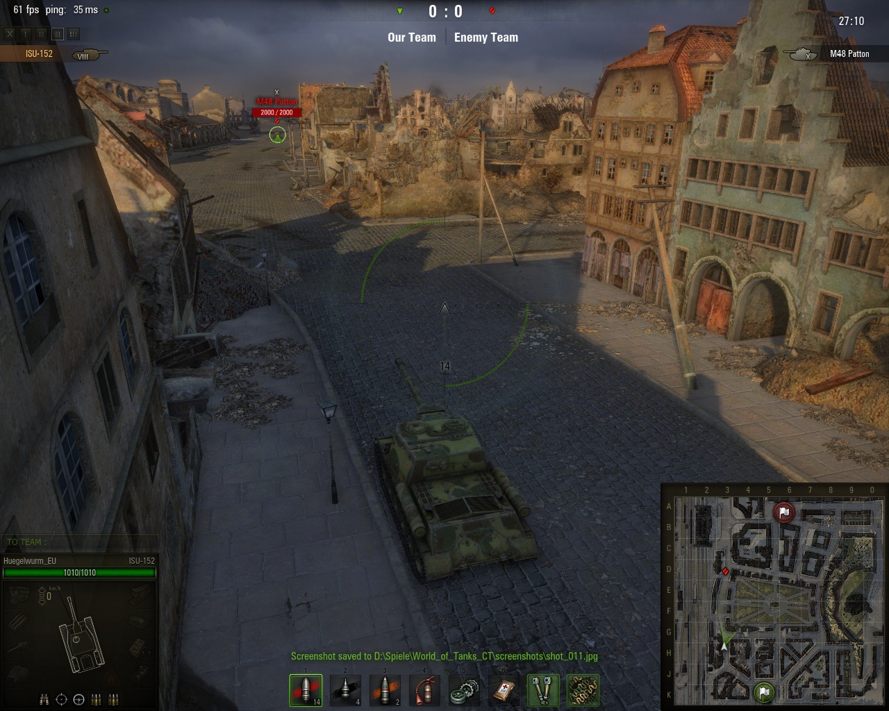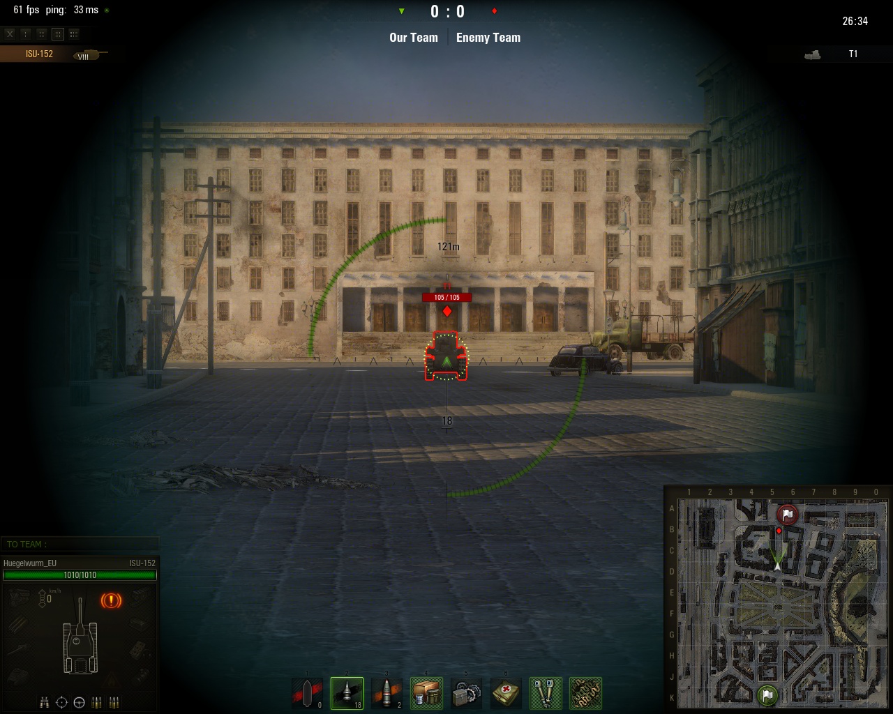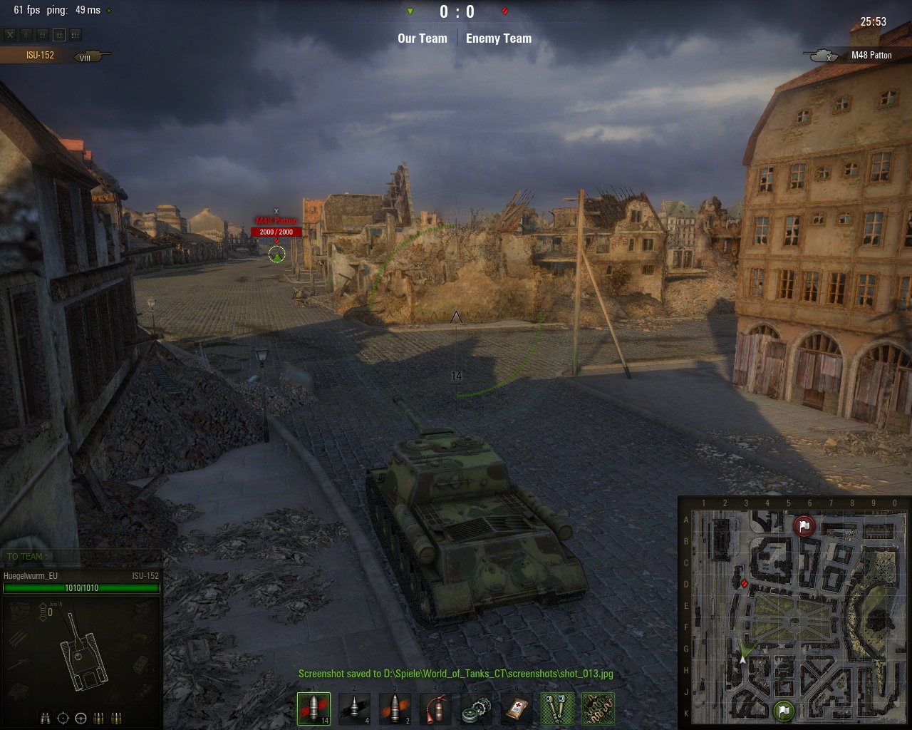 Getestet wurde die ISU-152 und der JP4 mit dem M48A1 Patton (da 420m view range) und dem T1 Cunningham.