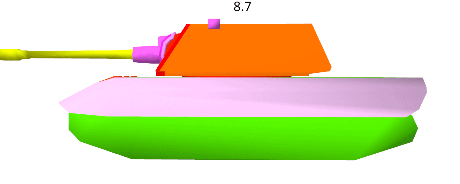 Die schlechten Sachen: Durch den Wegfall der Topmotoren ist das Ding sehr langsam in Beschleunigung und Drehen. Der Turm soll auch sehr langsam drehen. Die Konische macht nun 135 statt 165 Schaden, dafür wird die RoF angehoben, was am Ende trotzdem weniger DPM bedeutet. Mit der Einstufung als Heavy Tank steigt die Wahrscheinlichkeit, in höhere Gefechte zu kommen. Die 8,8er Kanone behält ihren lächerlichen Durchschlag von 132mm, was für ein HT absoluter Witz ist.