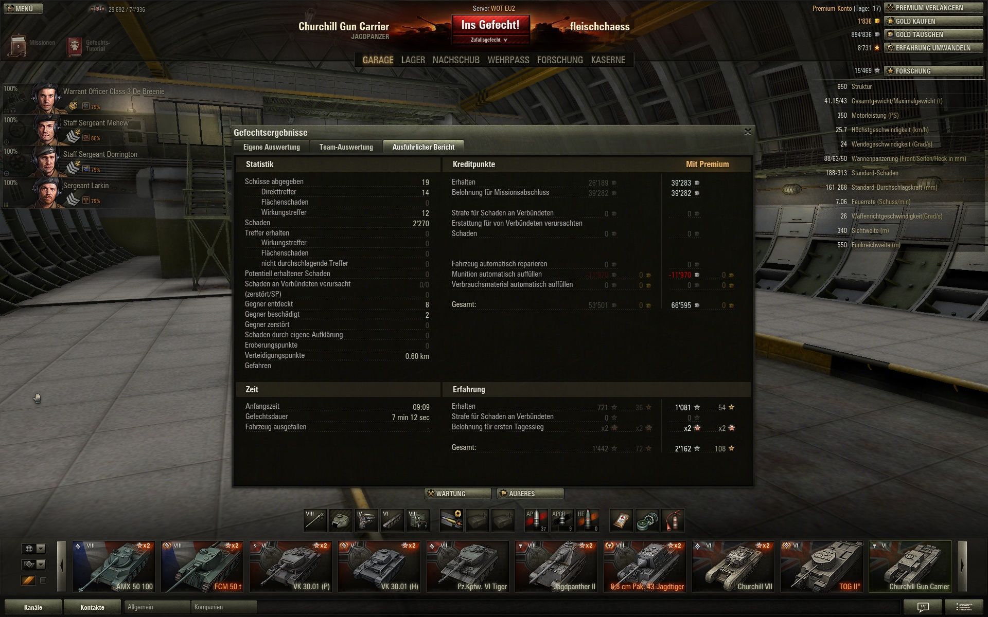 Richtig Pech gehabt damit in den 5 Runden heute... bis auf eine Ausnahme nur in Gefechte gekommen, wo mein Team zum Großteil aus Tomaten bestand und das gegnerische aus Unicum-Platoons... außerdem ist er noch stock. 15:0 vorprogrammiert...