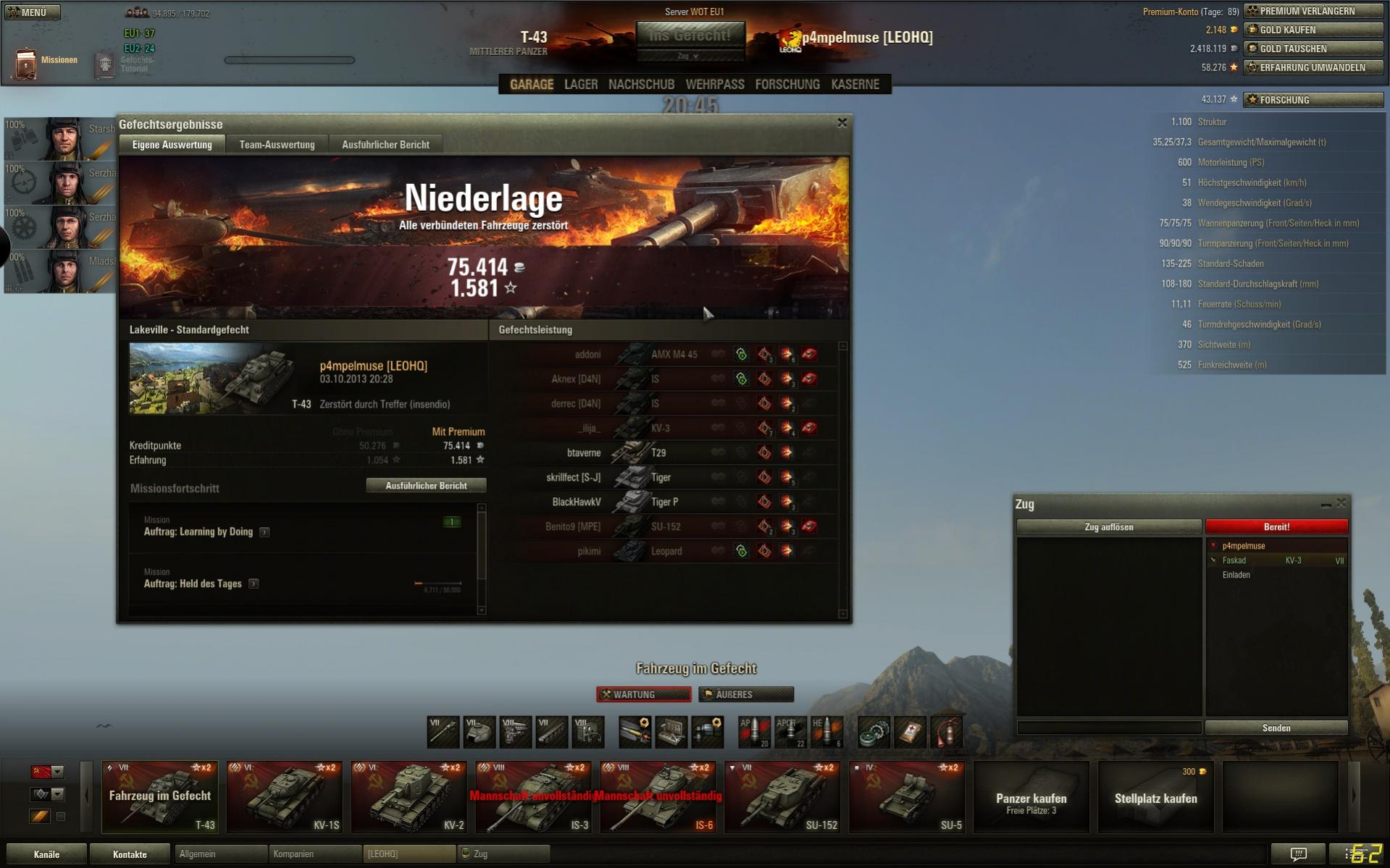 Mach weiter, diese Niederlage lag nicht an Dir. Obwohl ich mich mittlerweile mehr über Siege ärgere, bei denen ich frühzeitig abgeschossen wurde.pampelmuse schrieb:Ha, da wurd ich gerade überedet meine Wot Pause zu beenden und dann sowas.