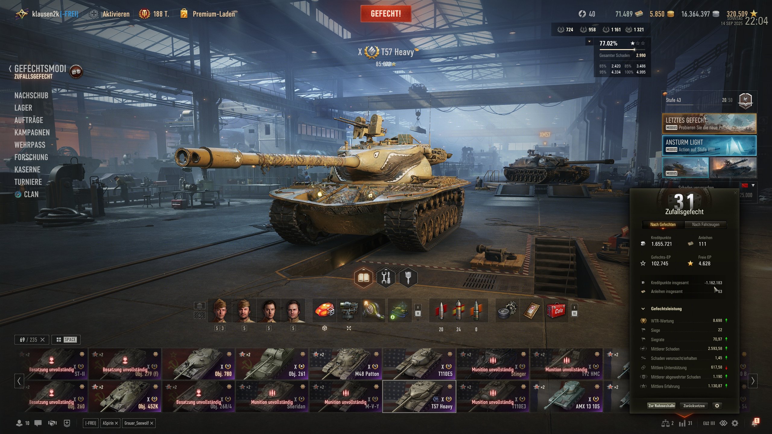 Hier haben sie es ja zusätzlich noch den CCs mitgegeben, dass es für den Matchmaker und dessen Learning notwendig ist. Wen das jetzt zu sehr stört, der muss halt bis nach dem BF6 Release oder besser noch, zwei Wochen nach Weihnachten warten. Dann wird es sicher wieder besser und die meisten Spieler sind weg, welche eh nur mal „Just for Fun“ reinschauen wollten. Ich persönlich freue mich auf das Weihnachtsgejodel, denn dann kann man wenigstens wieder gut Kredits einfahren, um sie dann für den einen oder anderen Tier 11 Panzer auszugeben. Denke mal, KR-1, Objekt 432U und Leo 1 120 werden meine ersten 11er werden. Habe gestern in der Facebook WoT Gruppe gesehen, wie da einer knapp 43 Prozent Tarnung bei stehendem Fahrzeug auf dem Leo 1 120 hatte. Also soviel wie ich aktuell auf dem Bourrasque / Miel habe.