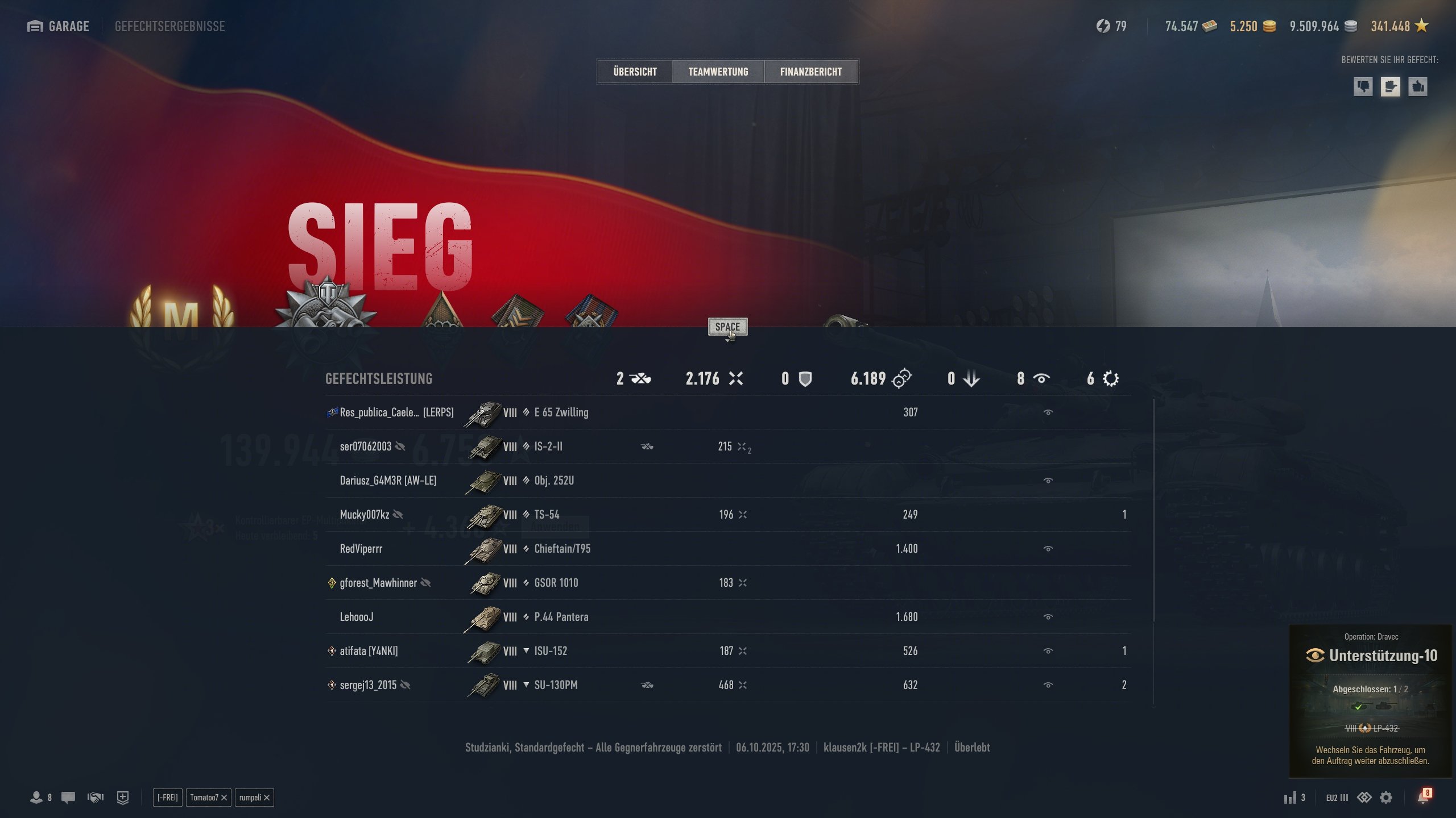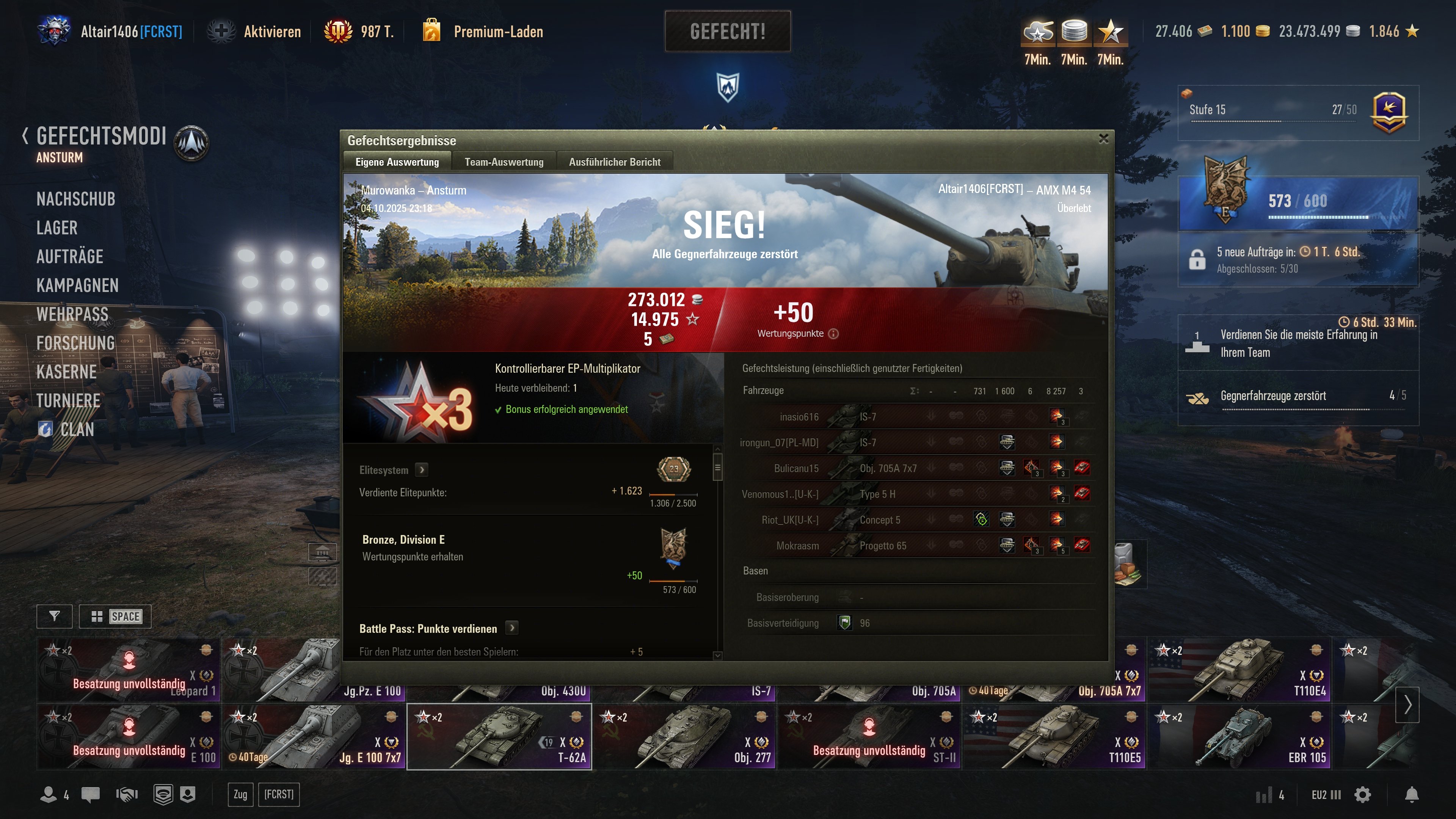 Mal ne schöne 9K Damage Runde (Combined) im Ansturm mit dem AMX M4 54 gehabt.
