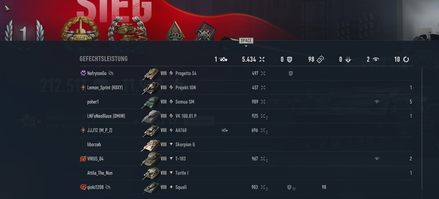 NĂ€chstes mal jammer ich gleich hier im Forum. Gestern lief es gar nicht, bis ich hier im Forum geschrieben habe. Da waren oft Runden dabei mit ein, zwei SchĂŒssen. Danach sind die 3 Runden raus gekommen. Bei dieser Runde sieht man deutlich das es eine Schadens Meta aktuell gibt. Oft habe ich es geschafft beide SchĂŒsse rein zu bekommen.