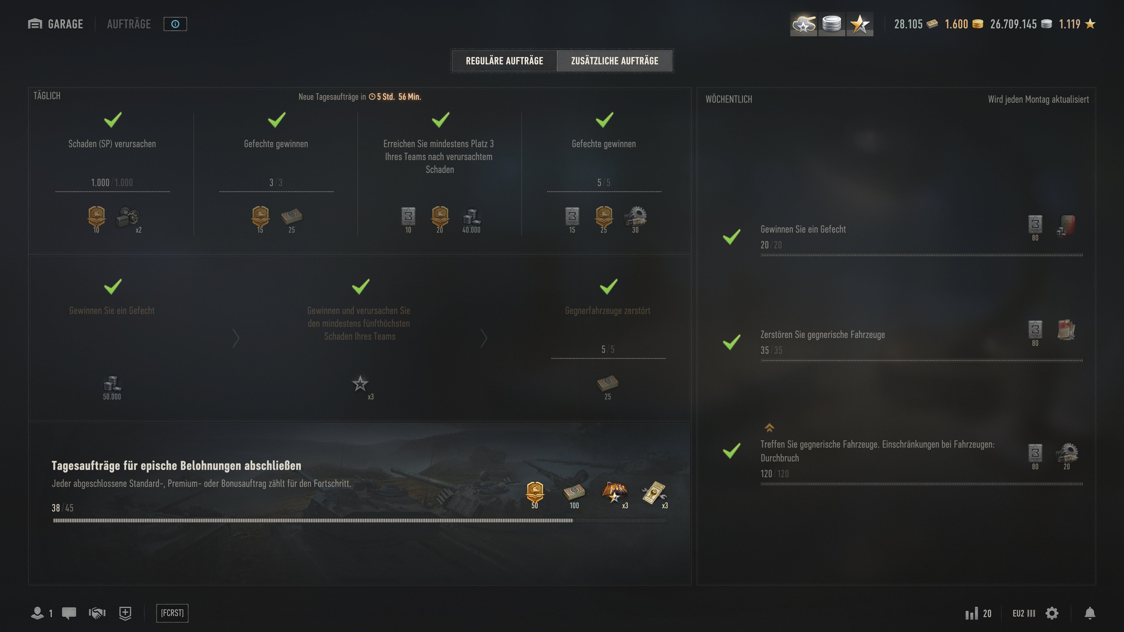 Im Ansturm Modus, fahre ich nur die Wochen AuftrĂ€ge und bin gerade in Silber D. Wenn Clan Kollegen noch ihre Wochen AuftrĂ€ge erledigen mĂŒssen, fahre ich mal paar Gefechte als gewollt.