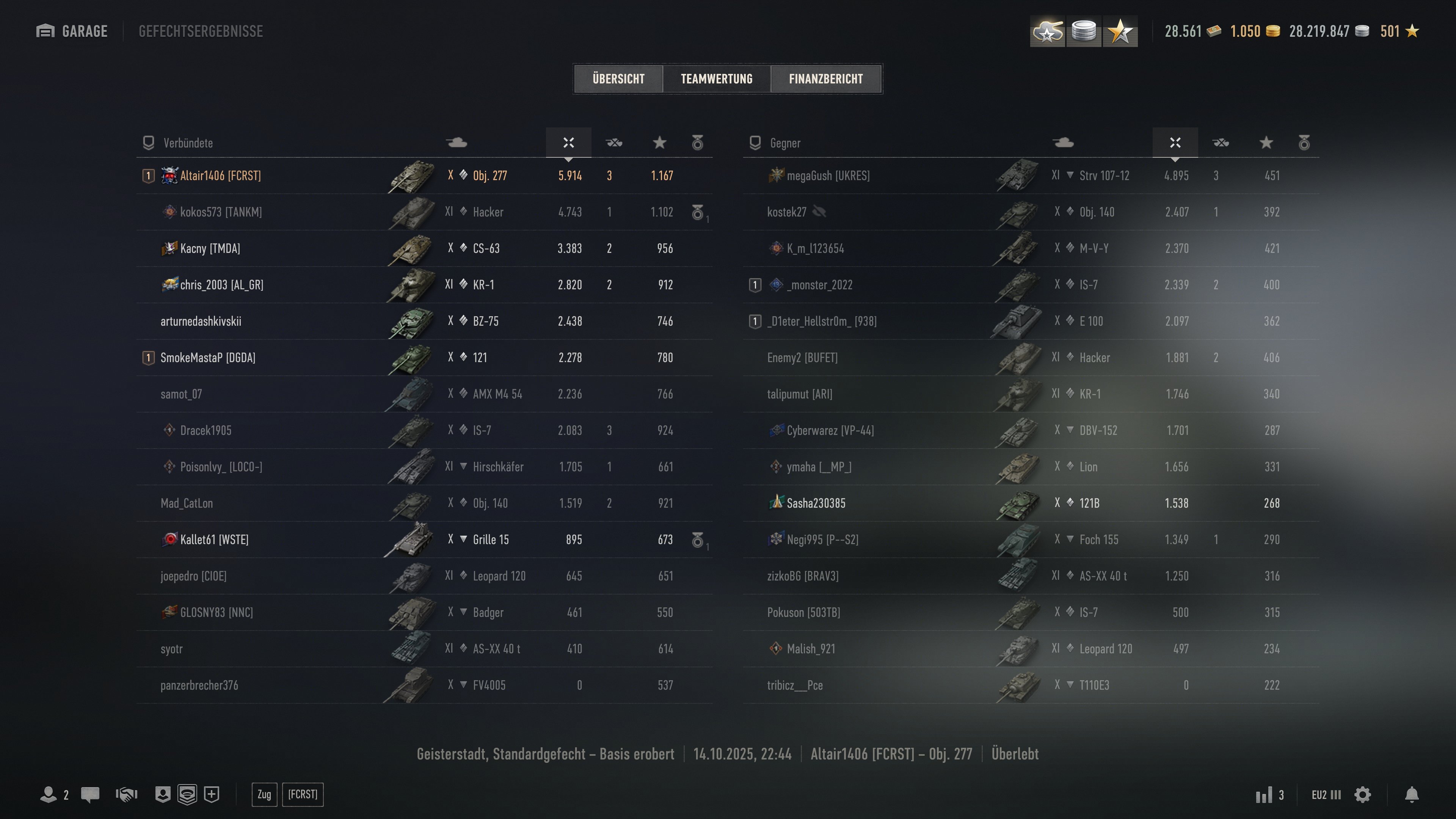 Wollte ich mal noch posten: Es war vorgestern eine schöne Runde mit @Fresh-D und dem Objekt 277.