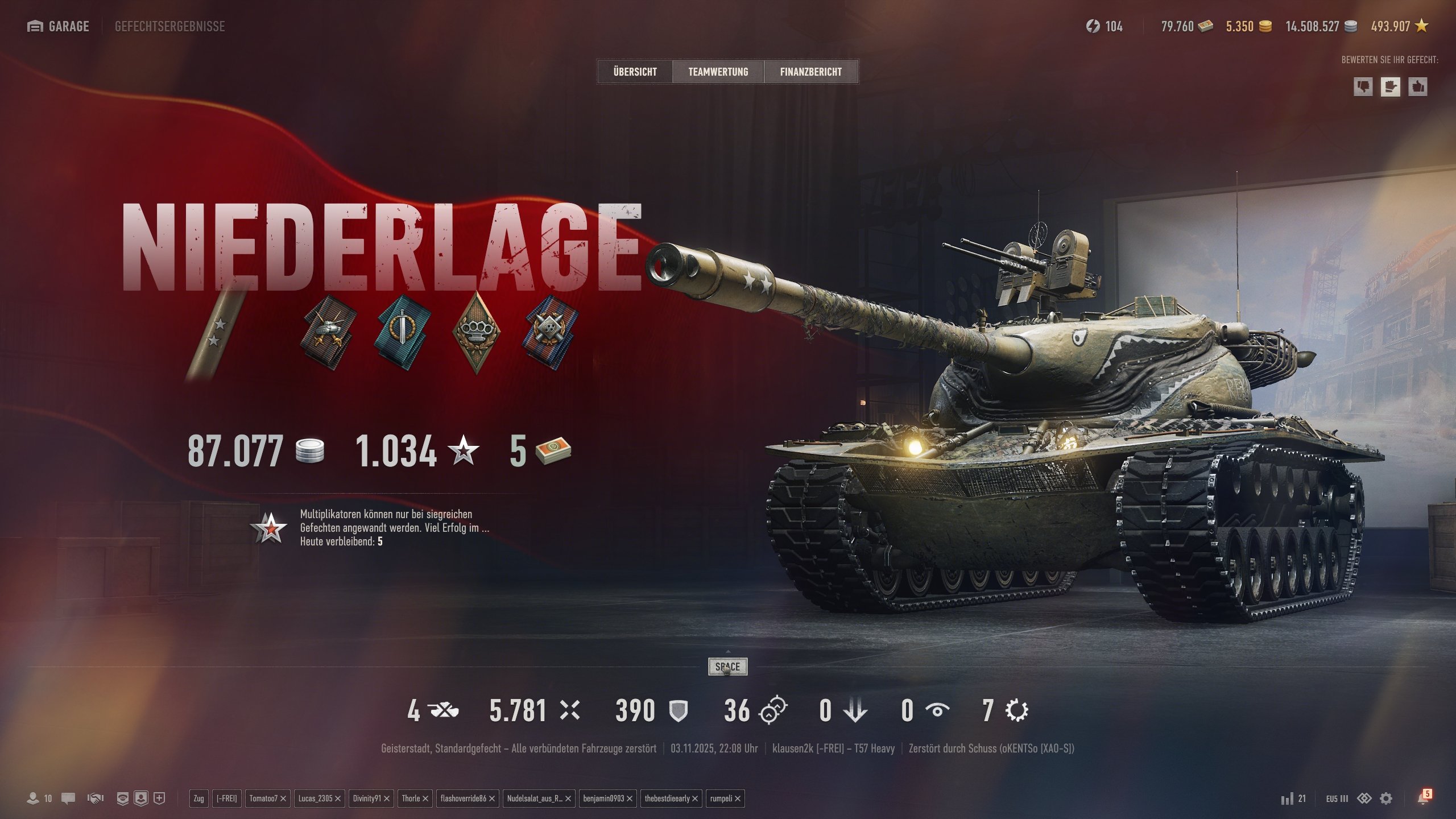 So, den ganzen Abend T50/51 gespielt. Ging wirklich sehr gut. Gefühlt 85% gewonnen. Bis Silber C oberes Drittel gekommen. Schlussendlich alle Aufträge mit abgeschlossen. Damit ist Ansturm für mich dieses mal fertig.