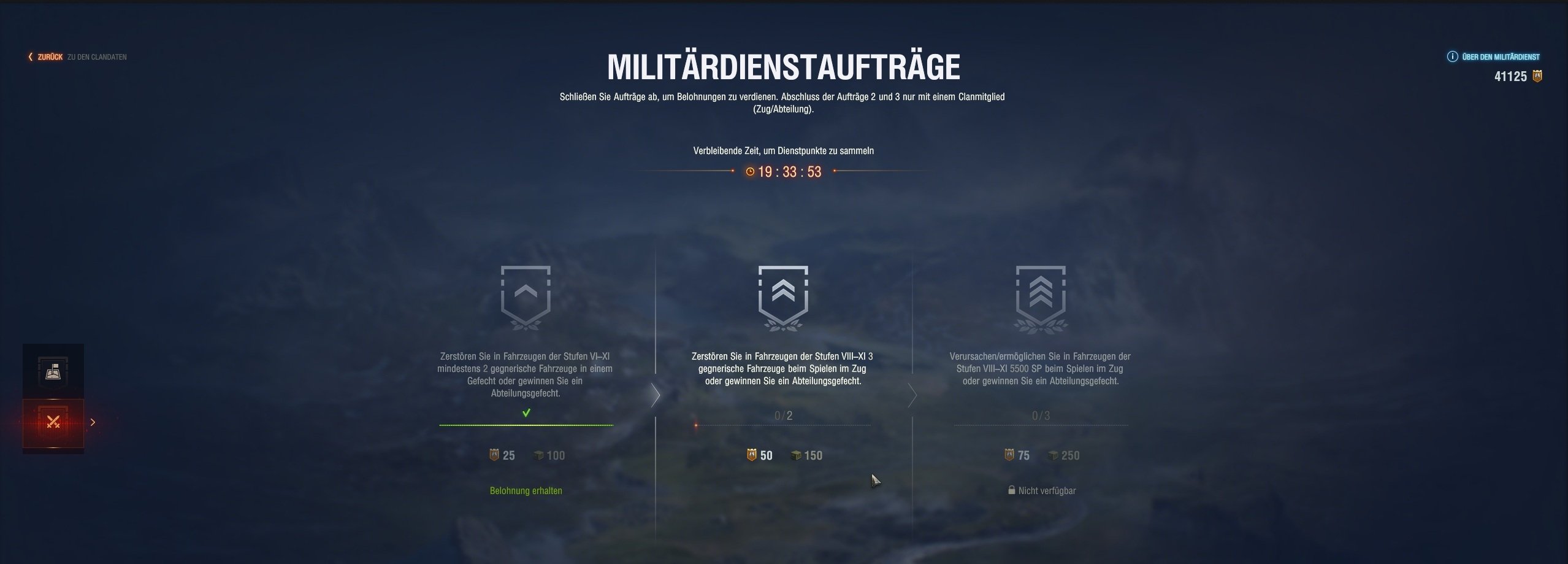Die Clanaufträge findet man nur im Clan Menu, sie werden jeden Tag geändert. Wenn Du eher der Spieler bist der allein fährt, kannst Du nur den 1. Auftrag Abschließen und bekommst nur 25 Punkte. Mit Clan Kameraden kannst Du die anderen 2 Aufträge Abschließen und bis zu 150 Punkte mitnehmen.
