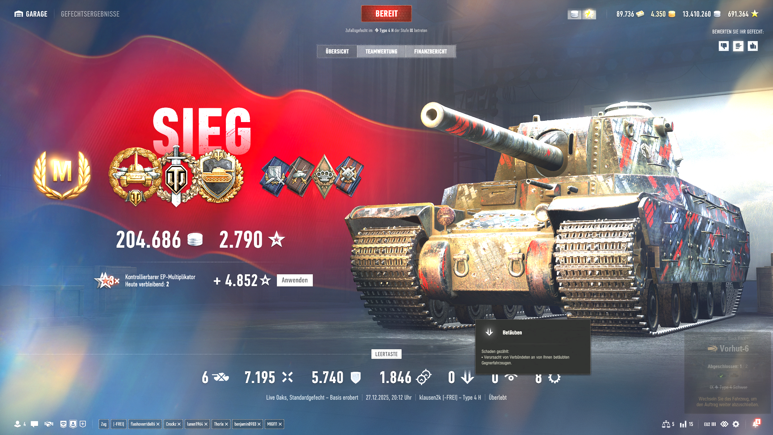 Sieg und Niederlage sind dieser Tage eher schwierig, sieh zu das du immer genug Damage zusammen fährst. Aber mit 2k im Schnitt (aktuell) bist du eigentlich auch noch gut dabei. Mit der Top Gun ist dann auch mehr möglich.