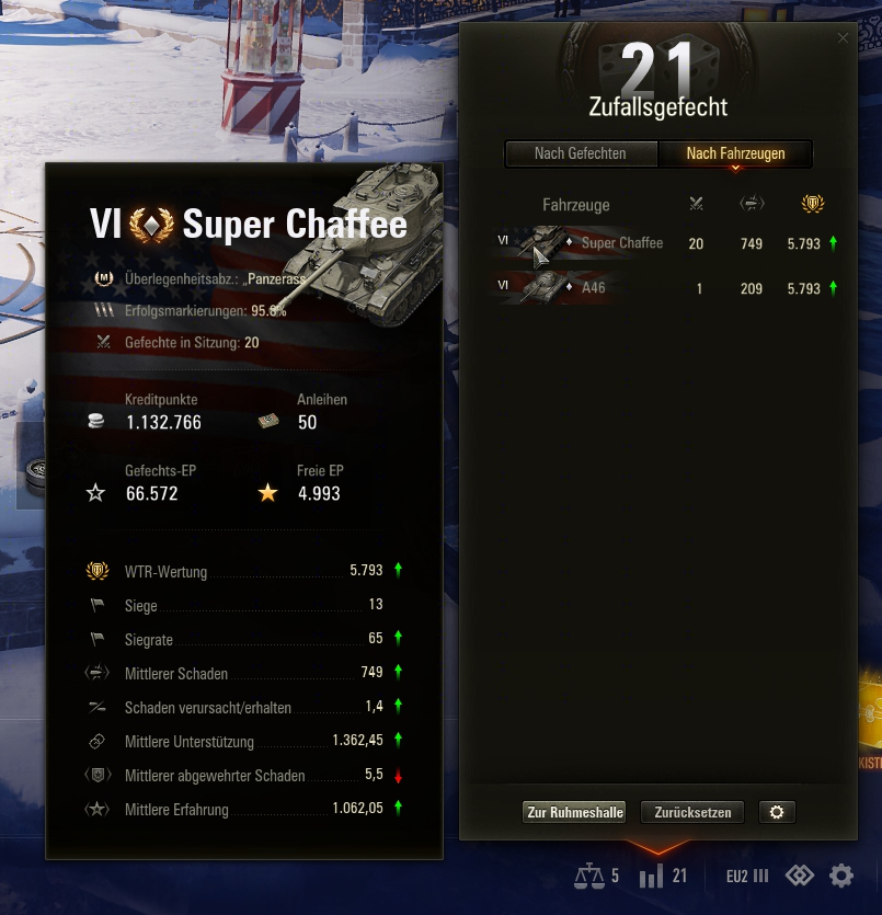 Ich habe mich heute noch in den Super Chaffee gesetzt, das ist ein Himmelweiter Unterschied zu dem A46 und man kann auch mitspielen als Light, wenn man die Kanone braucht macht diese zuverlässig Schaden 😅 und man kommt aus schwierigen Situationen wieder weg.