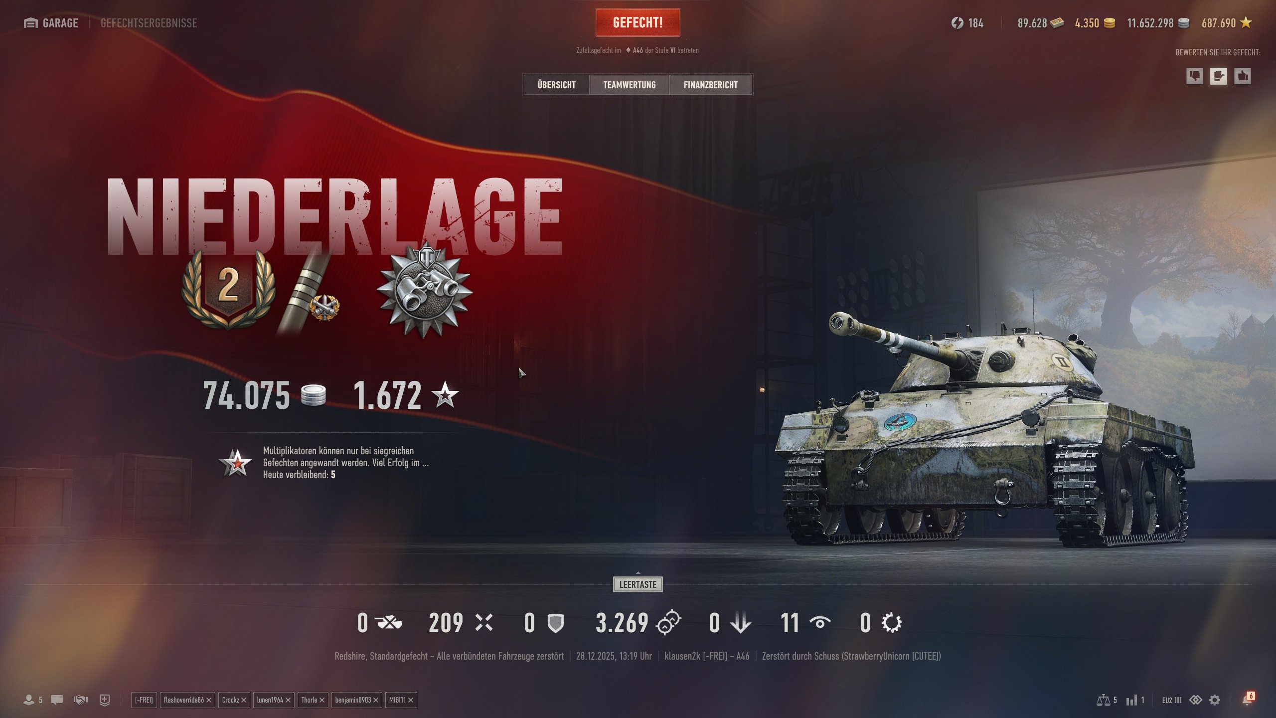 Den A46 gab es mal Geschenk als Belohnungs Fahrzeug - leider ist seine Kanone total Mist, das Gunhandling möchte Ich erst gar nicht Erwähnen und die Mobilität ... naja mehr schlecht als recht.SavageSkull schrieb:Ich habe gar keine Ahnung, was das überhaupt für ein Ding ist.
